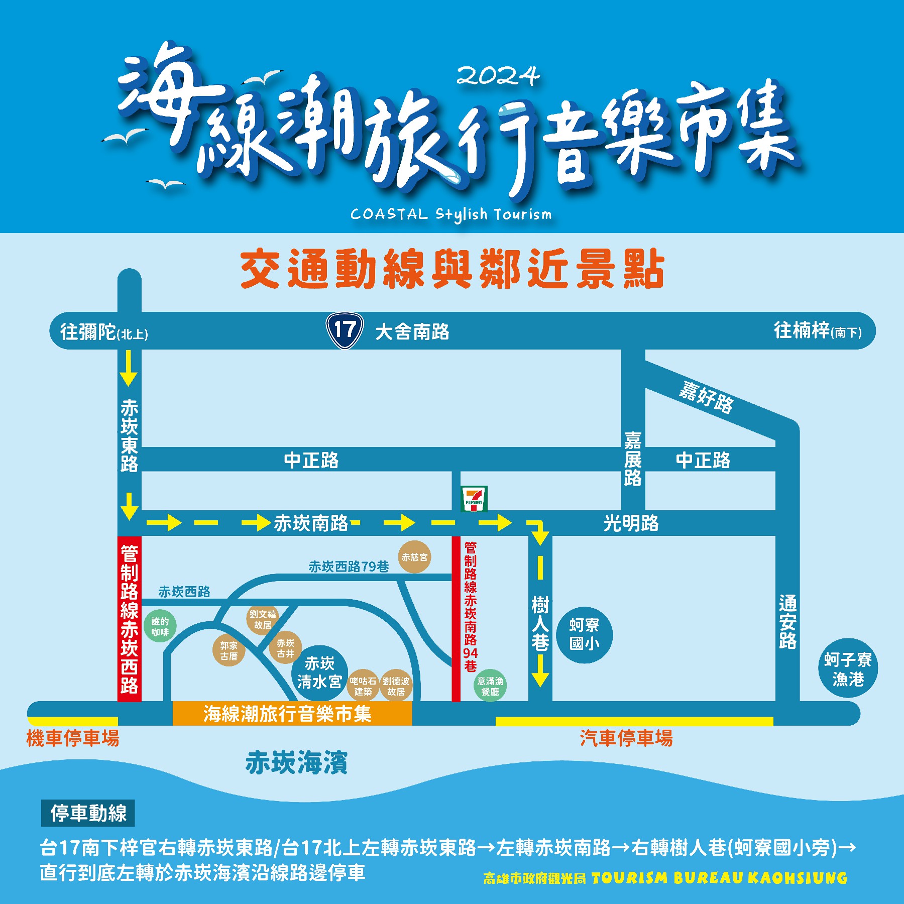 ↑圖說:「海線潮旅行音樂市集」梓官赤崁海濱交通圖(圖片來源:高雄市觀光局提供)