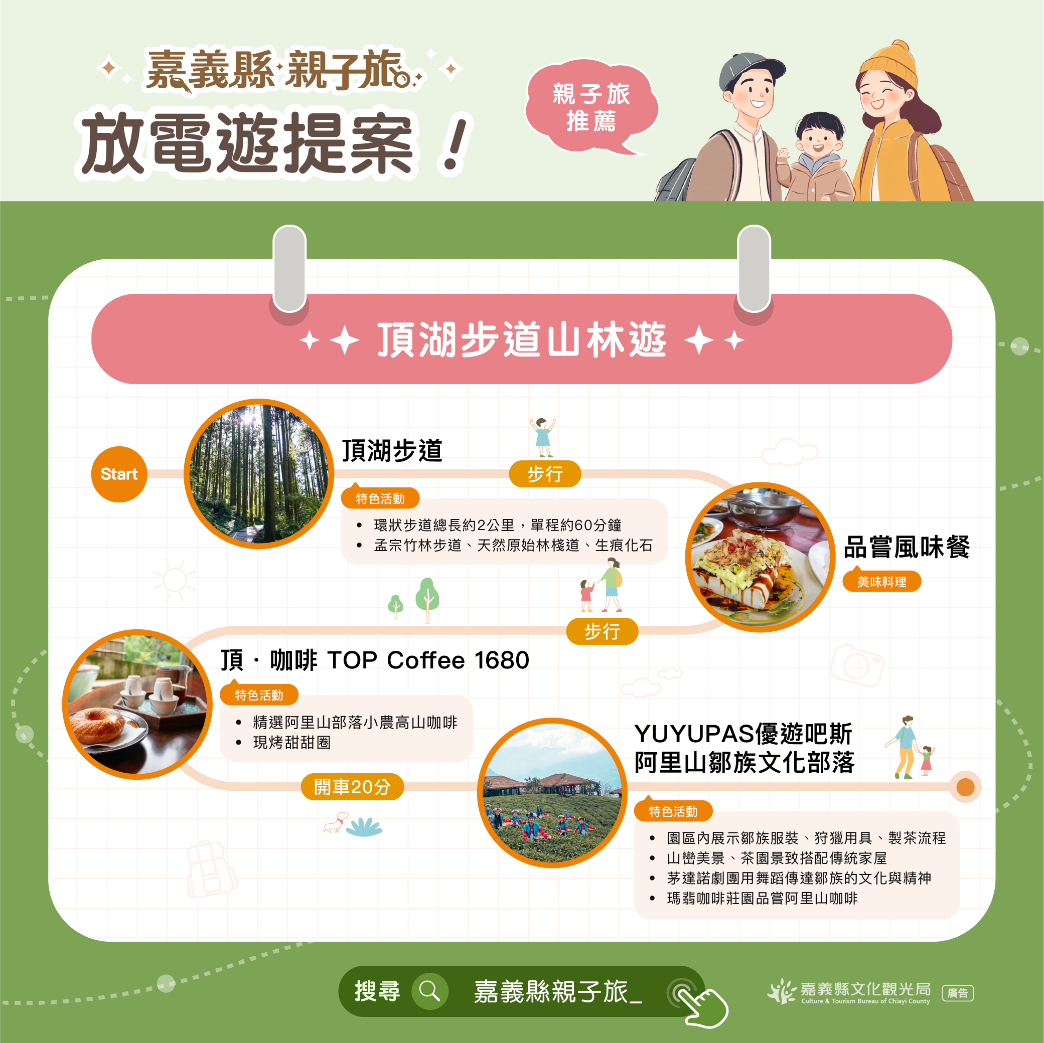 ↑圖說:頂湖步道山林遊是值得一走的親子放電旅遊提案。(圖片來源:嘉義縣文觀局提供)