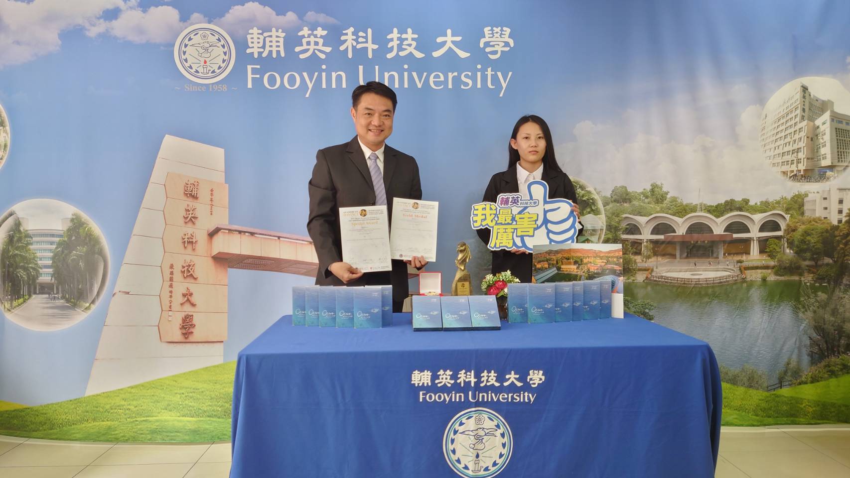 圖說:謝天傑(左)率研究團隊獲達文西國際發明展一金一特別獎。(圖片來源:輔英科大提供)