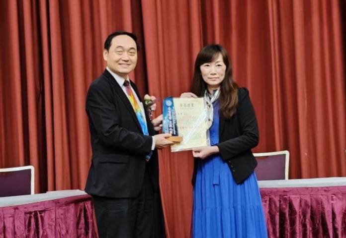 圖說:柯美華(右)獲國際傑出芳香療法健康促進卓越貢獻獎。(圖片來源:輔英科大提供)