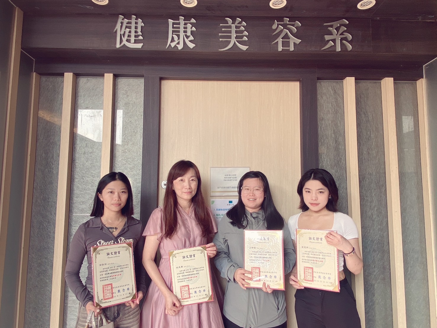 圖說:柯美華(左二)指導學生榮獲優秀論文金獎。(圖片來源:輔英科大提供)