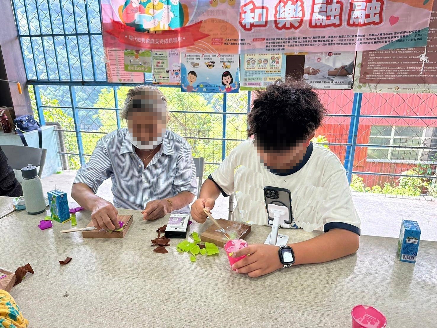 ↑圖說:六龜中心隔代教養暨社區共融方案,透過園藝,讓祖孫相互合作完成作品。(圖片來源:高雄市社會局提供)