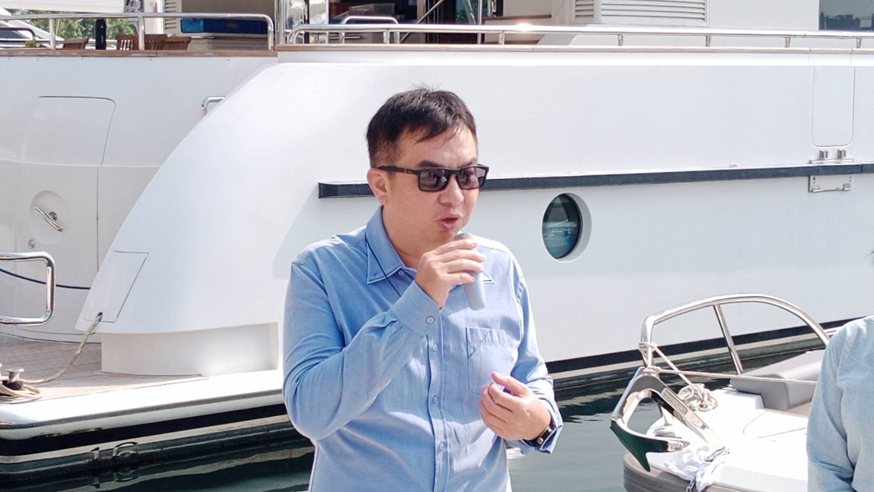 圖說:侯佑霖重視中部遊艇休閒開發,指定亞歆海洋兩艘遊艇同時上架亞果平台,讓會員可享使用優惠。(圖片來源:韓文明攝)