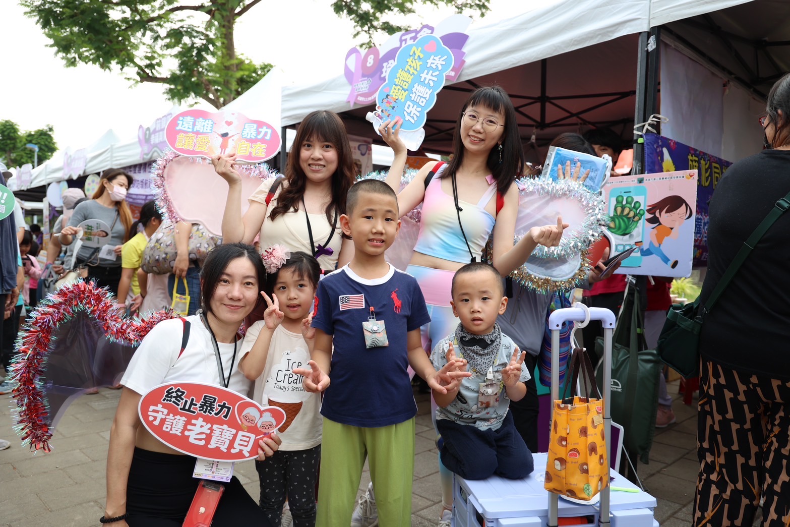 家防中心透過動靜態方式展現30個防暴社區平日宣導成效,同時表揚5位優良防暴宣講師,感謝他們在暴力預防工作上的奉獻,活動現場有800多位大小朋友一起在歡樂氣氛中瞭解防治家暴、兒少保護的重要性。
