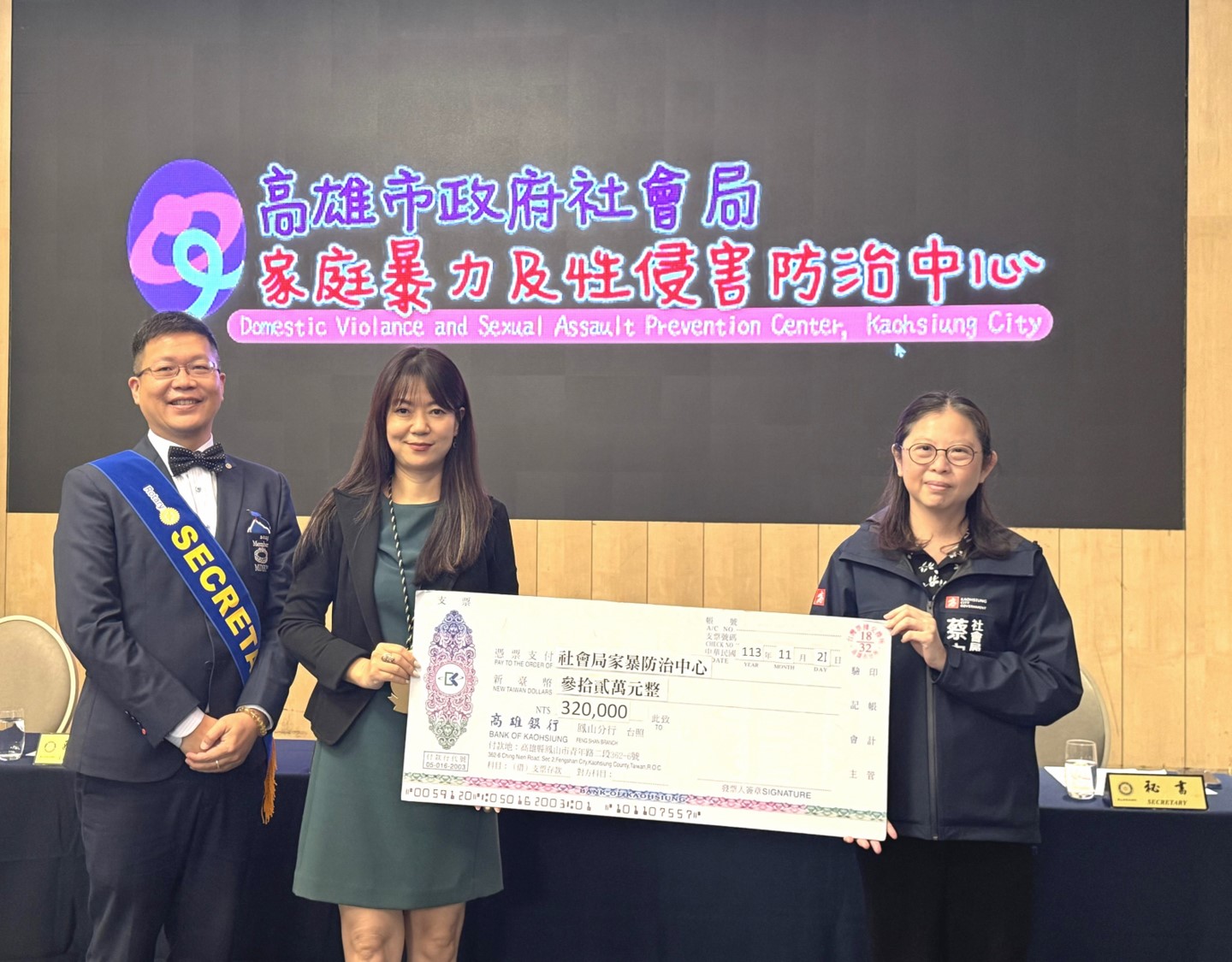 圖說:鳳山南區扶輪社近日集結愛心公益,捐贈32萬元予社會局家庭暴力及性侵害防治中心,(圖片來源:高雄市社會局提供)