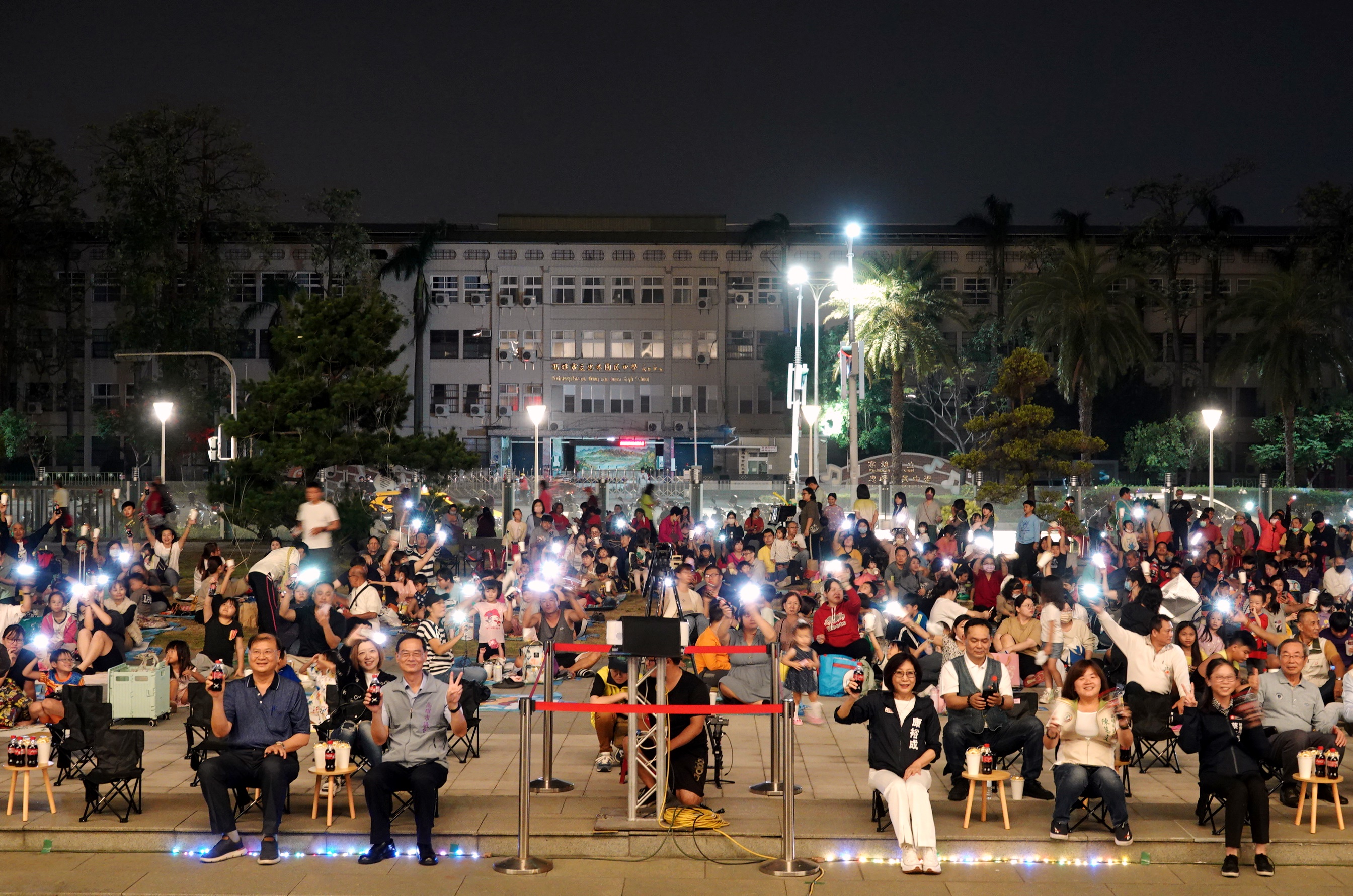 ↑圖說:高雄市議會寒冬聯合送暖活動,首次以星空電影院的形式,邀請市民與弱勢受贈家庭一同欣賞電影。(圖片來源:高雄市議會提供)