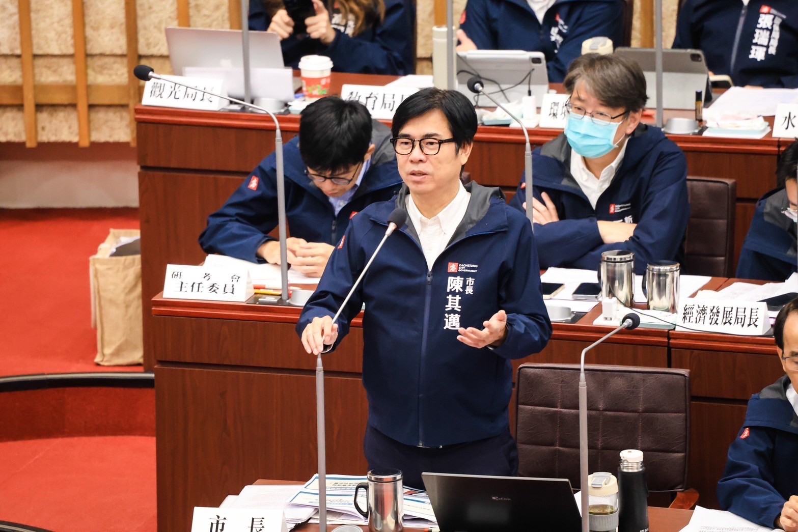 ↑圖說:陳其邁於市議會備詢時,針對高雄國際機場的未來發展規劃作出重要說明。(圖片來源:高雄市政府提供)