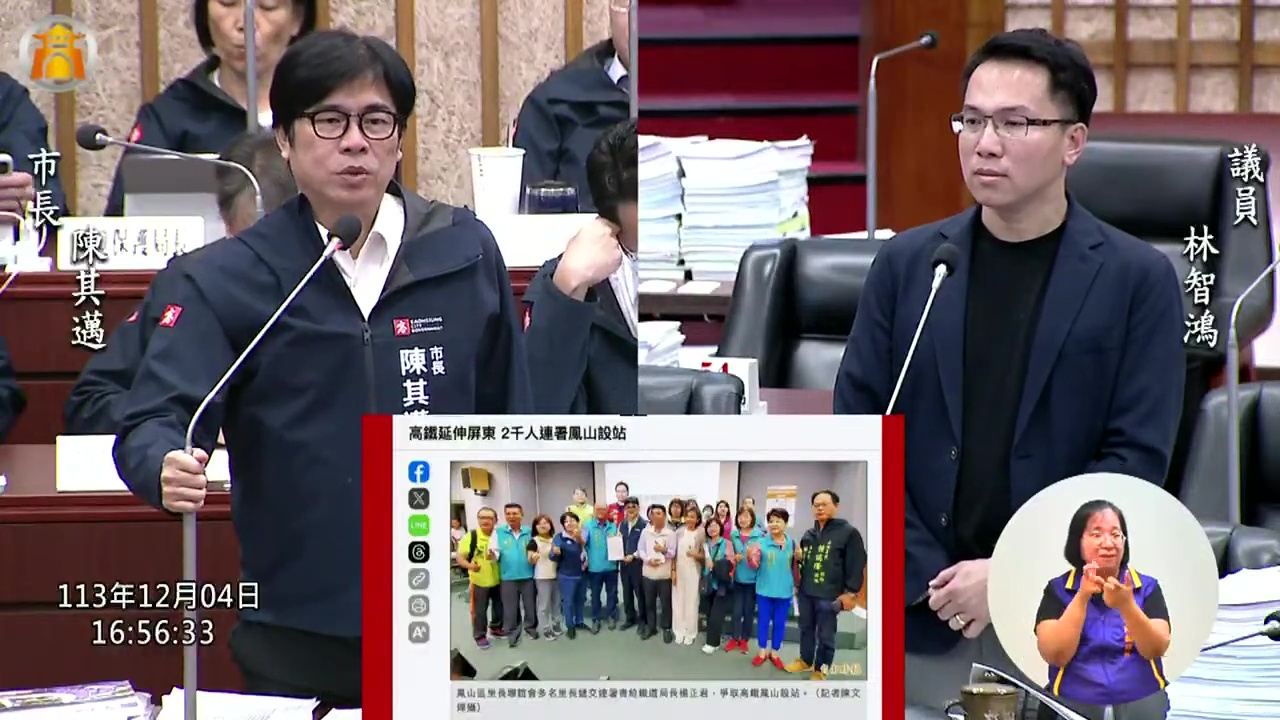 林智鴻也提到,目前已有超過2000名鳳山居民聯署支持設站,這不僅是地方共識,更是地方發展的核心訴求。他呼籲市府積極表態,向中央爭取高鐵南延站設於鳳山,實現大高雄多核心發展的願景。