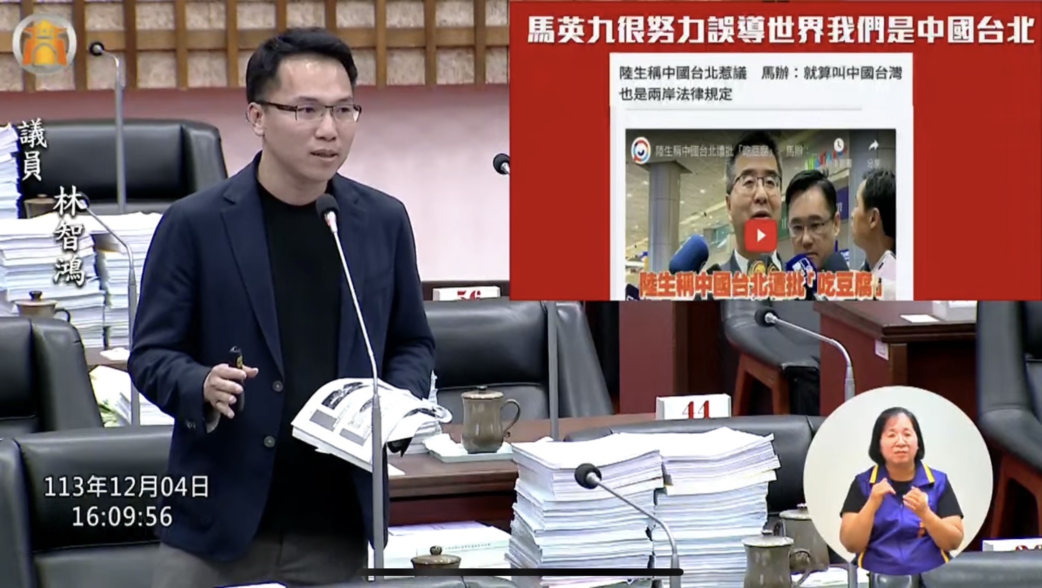 林智鴻在質詢中強調,台灣因其地理位置與科技實力受到國際重視。他表示,近期總統賴清德出訪南太平洋盟邦,加上台灣棒球奪下世界冠軍,讓「台灣」的名字再度響徹國際。他分享自己上週訪問美國奧勒岡州時,當地政要特別祝賀台灣棒球奪冠,展現國際對台灣的支持與肯定。他並批評前總統馬英九以「中國台北」稱呼台灣,意圖混淆國際視聽,損害台灣形象。