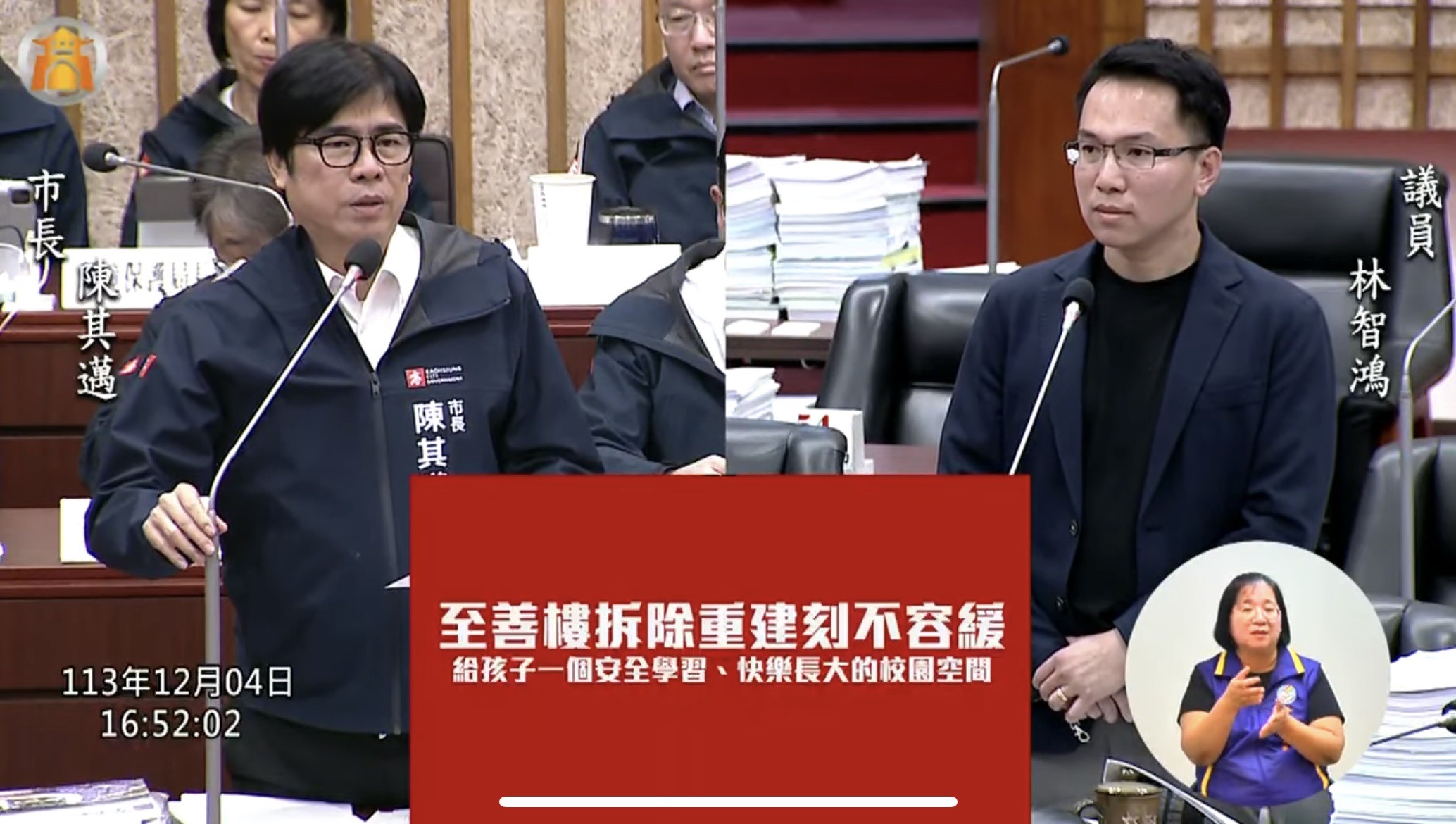 質詢中,林智鴻也聚焦新甲國小的校園安全問題。他指出,該校校舍自民國73年建造至今,陸續加蓋成為老舊「拼裝車」,基礎結構恐難以承受長期使用壓力,且校內無室內活動中心,無法滿足2113名學生的學習需求。家長會代表當日特地到場旁聽,表達對校舍安全的高度關切。林智鴻呼籲市府加速新校舍規劃,為學童創造安全、舒適的學習環境。