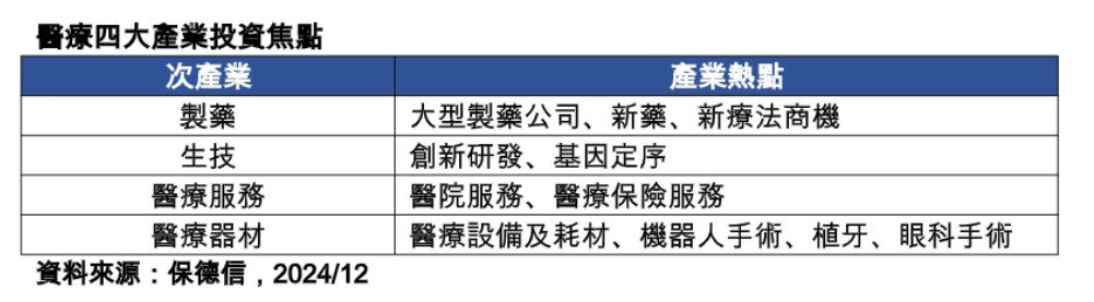 醫療4大產業投資焦點!一表掌握 保德信:醫療類股不看淡