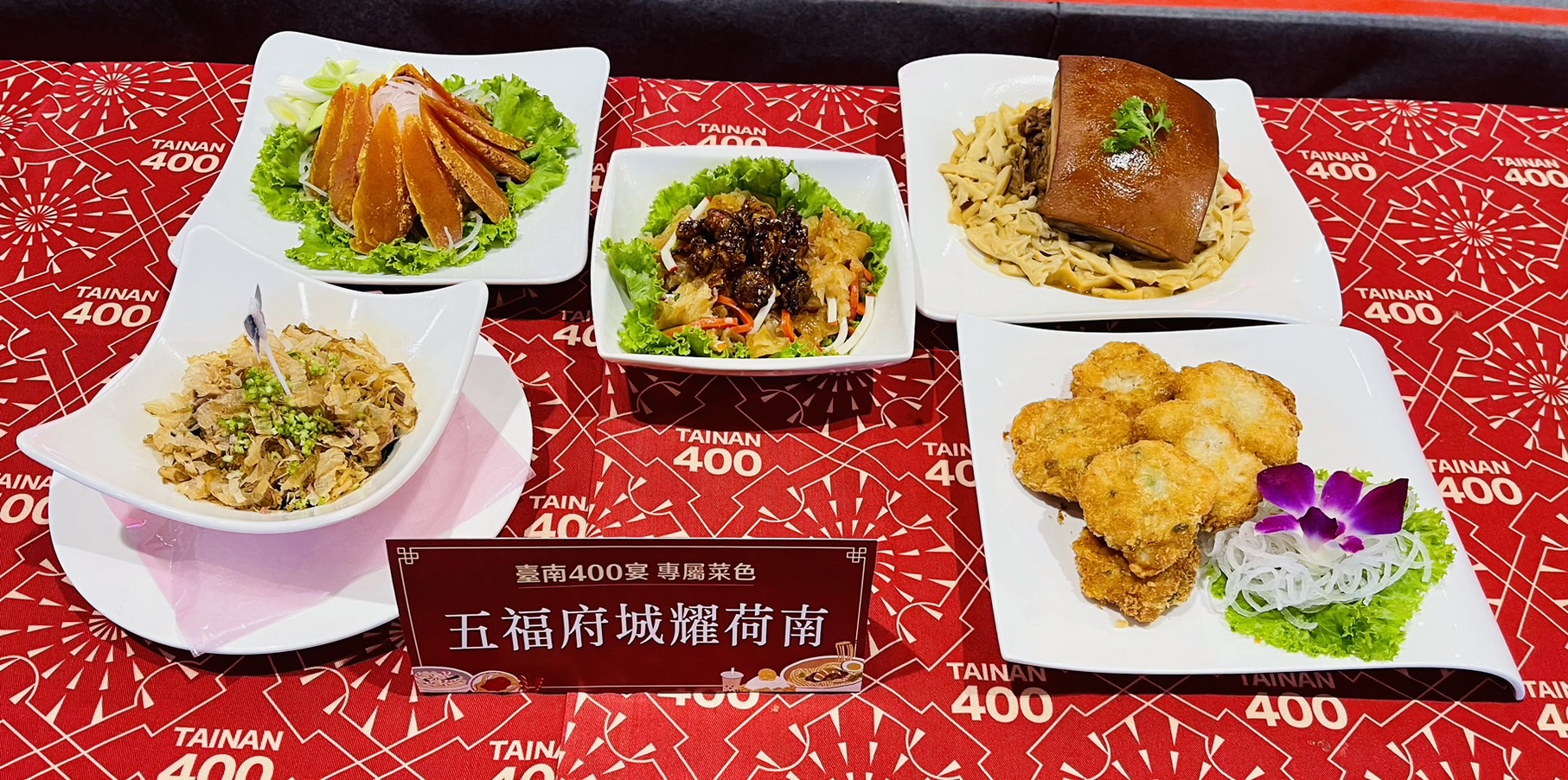 臺南市觀光旅遊局局長林國華則進一步介紹,這次活動邀集臺南四大知名總舖師聯手打造包括「五福府城耀荷南」、「粉絲宮煲炒帶子」、「布袋干貝繡球雞」等十道專屬菜色,每一道都是滿滿的臺南味。參與的總舖師包括阿勇家餐飲事業汪義勇(阿勇師)、施家班餐飲宴席玄饌宴會館施宗榮、洪廚喜宴洪俊男,以及宏珍宴席餐廳郭育宏,他們共同將臺南辦桌文化的精髓,融入在這場壓軸年度盛宴中。