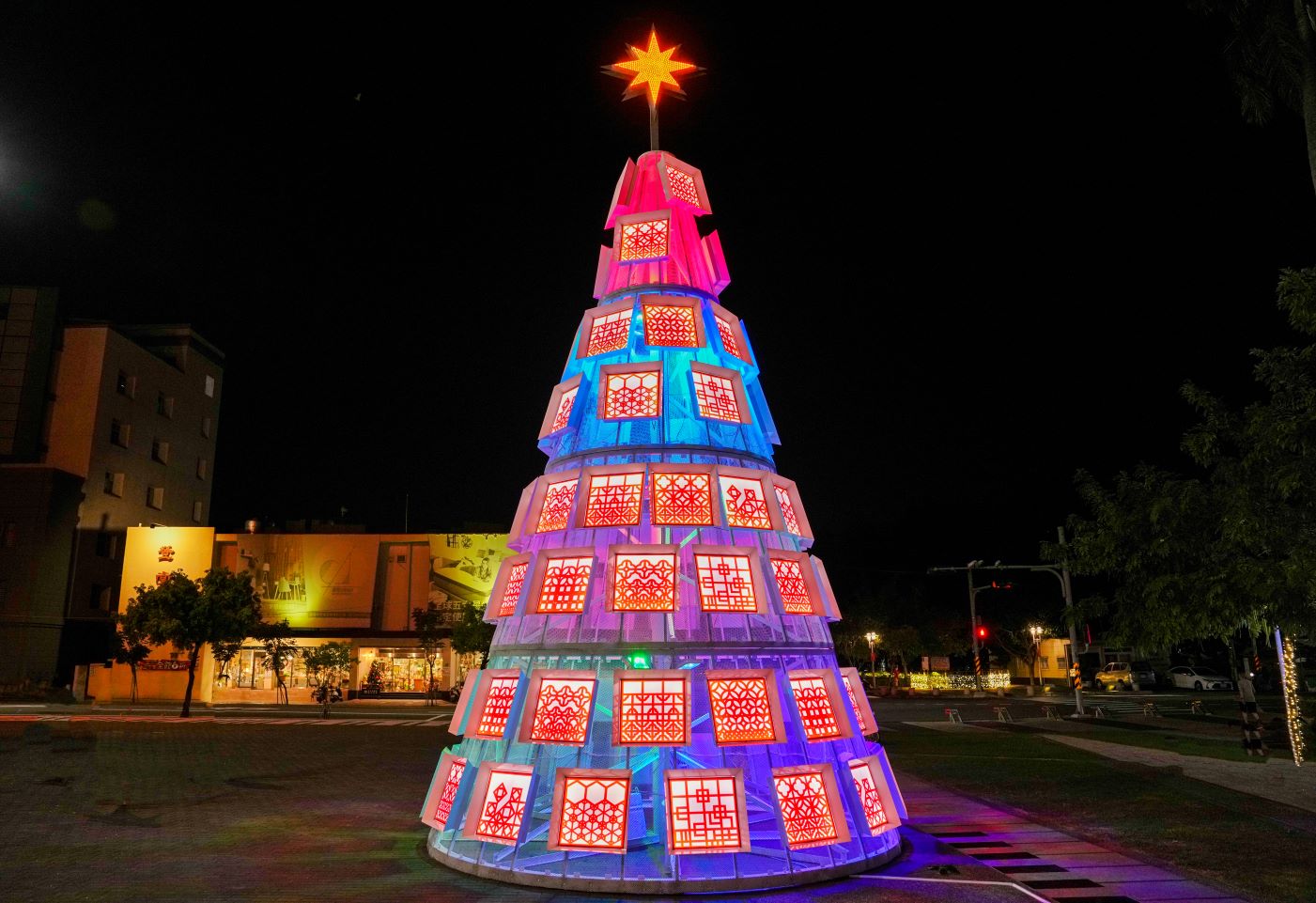 圖說:新營市聖誕主燈位於文化中心廣場。(高科大創新設計學院提供)