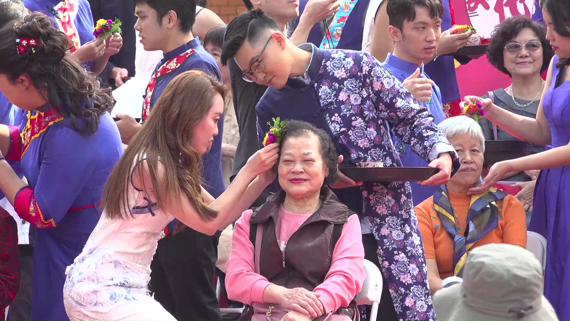 ↑圖說:「插頭花」展現對長輩的敬重,也為新人生活揭開幸福序幕。(圖片來源:記者 賴君欣 拍攝)