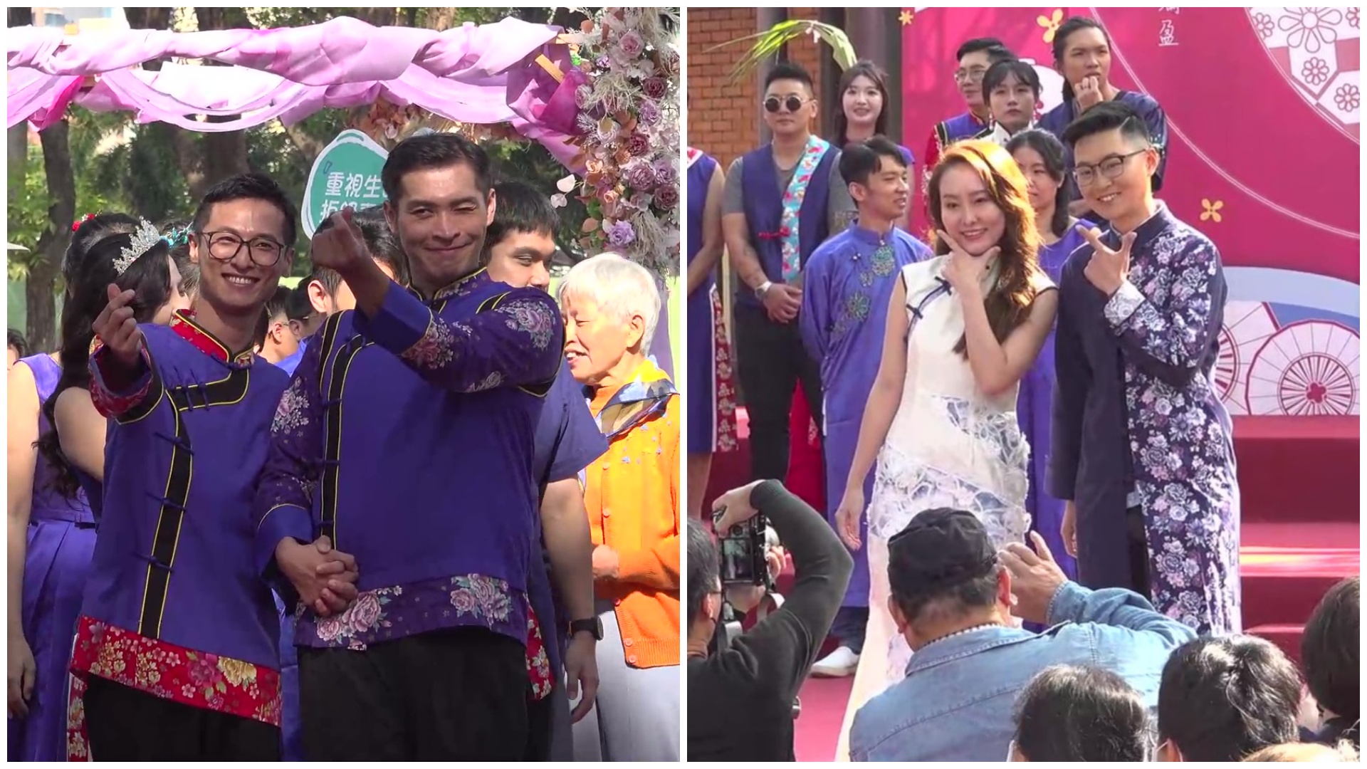 ↑圖說:21對新人中有4對是同性伴侶,其中還包括原住民與非客籍人士(圖片來源:記者 賴君欣 拍攝)