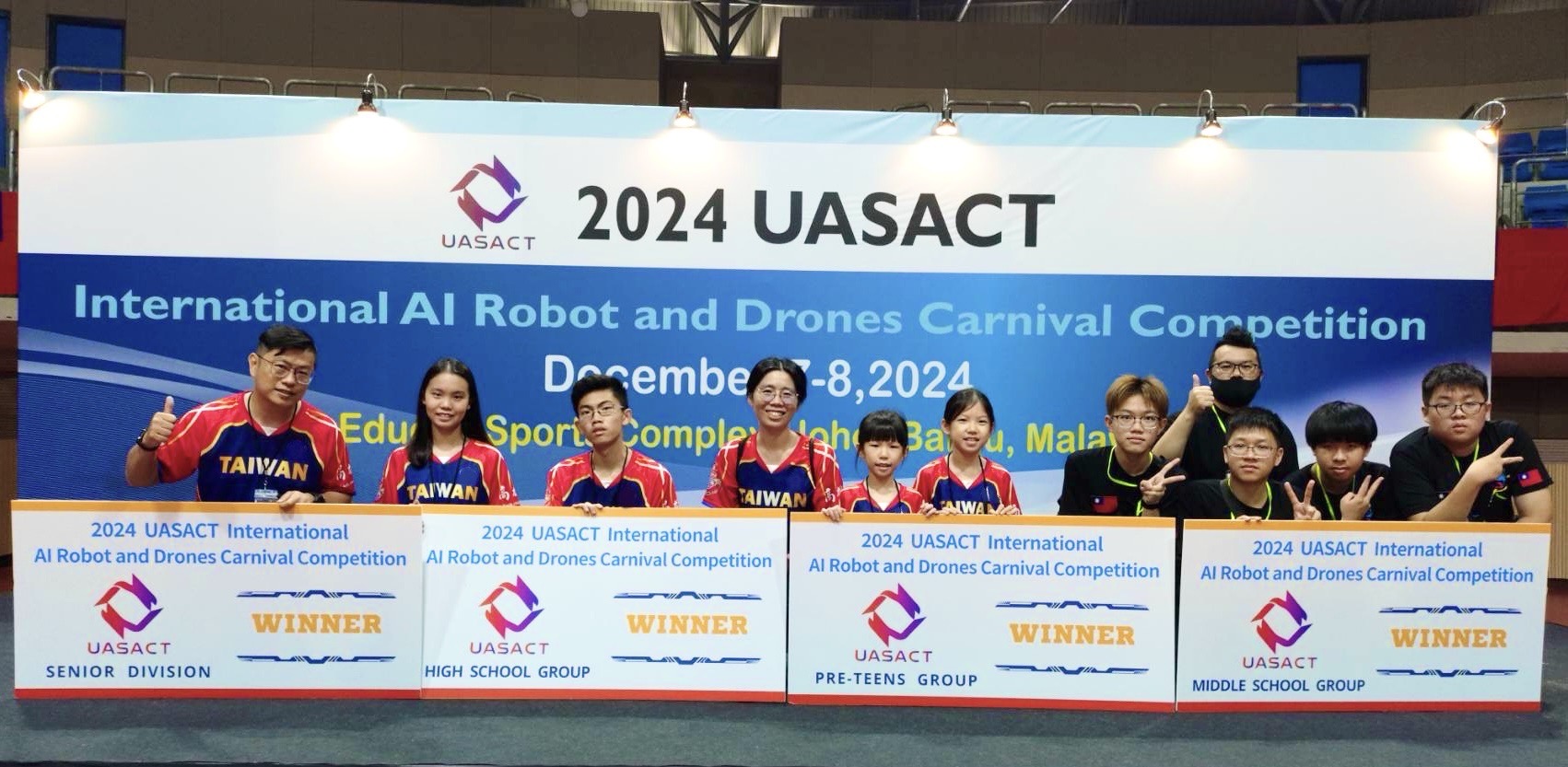 這次臺灣代表隊以高雄學校與個人為主要參賽隊伍,包括民族國小、林園高中國中部、道明高中與實踐大學高雄學區等,由民族國小李漢光、林園高中葉建志老師等帶隊;分別拿下「無人機足球」國中組及社會組冠軍;「無人機穿環障礙賽」包辦國小組、高中組與社會組冠軍;「無人機釣魚任務賽」橫掃國小組、高中組、社會組冠軍,8面金牌到手,頒獎時國旗飄揚,令參賽國家刮目相看。