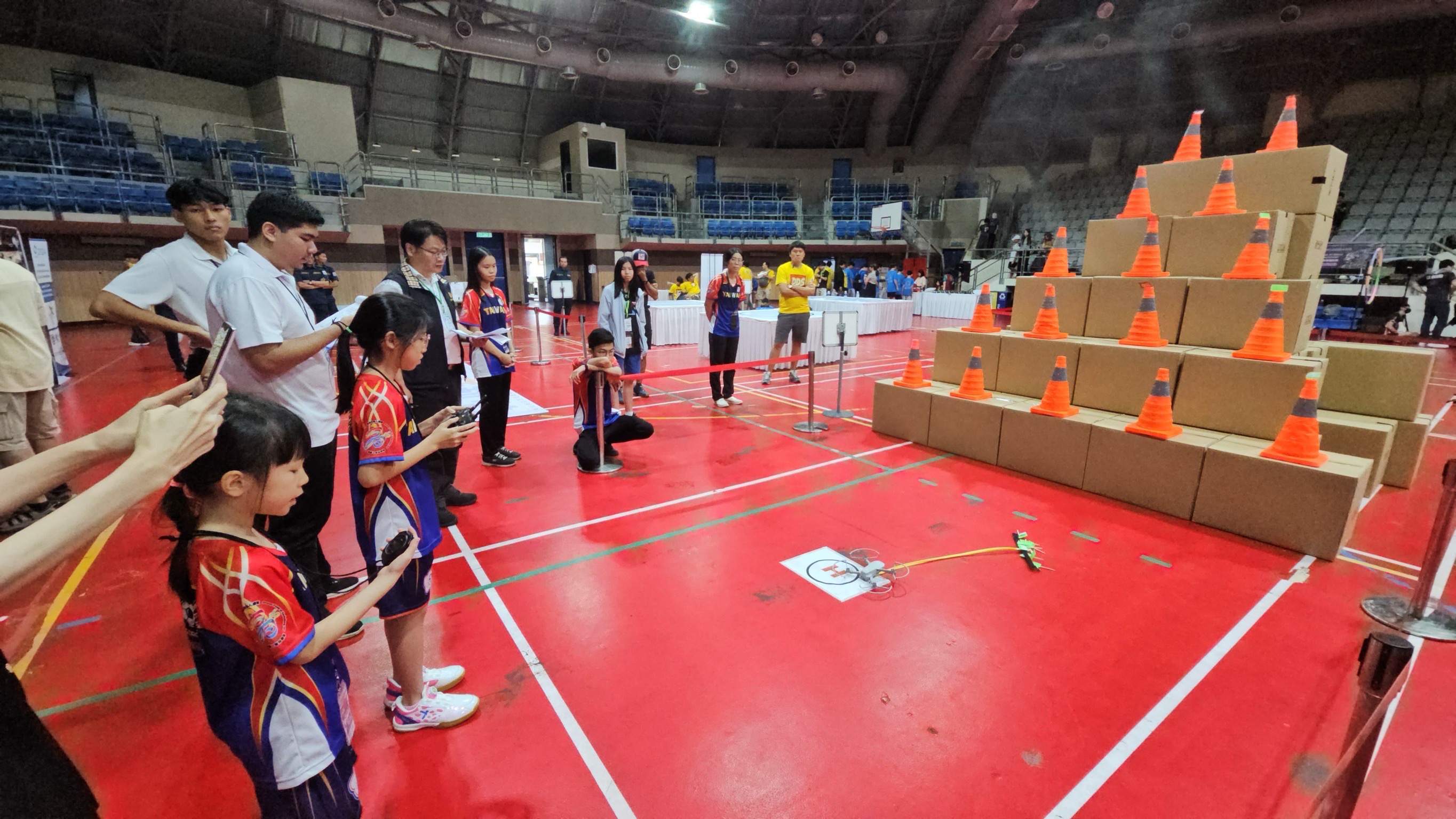 無人機穿環障礙賽由李漢光、宋佩穎老師指導民族國小李忻嬡、李杺嬣同學,道明高中張景然與吳少棻同學,分別在國小組,高中組與社會組中靠著一年來平日課餘時間的努力練習,為代表隊在此賽事三個組別奪下三項冠軍。