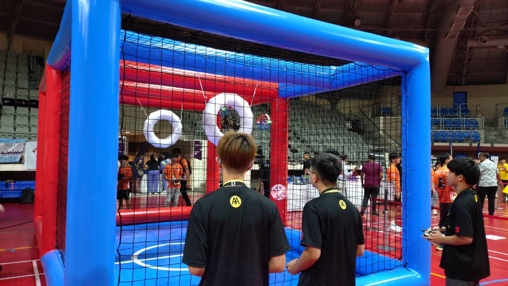 李漢光說,無人機足球是近年來新興的無人機競技運動,目前在美國,韓國,日本,台灣與中國等國都有不少賽事舉辦,甚至未來也被期待可以納入亞奧運的比賽項目之一。無人機足球是指在氣柱與尼龍網圍成的空間中,兩隊各自以三台足球型鏤空的保護罩罩住的無人機進行比賽,每隊各自指定一顆無人機足球當作攻擊機,搶攻對方陣營懸掛著的內徑僅40cm的圓形球門;其餘兩顆則為防守球阻擋對方的攻擊球穿越己方球門得分。在三戰兩勝的賽制下,每局僅有三分鐘的限時賽中,雙方共六顆無人機足球各司其職,有如哈利波特的魁地奇競賽般,在空中透過不同的戰術互相競逐,有的負責攻城掠地穿環得分,有的強化防守不讓對方越雷池一步,你來我往之間的互相撞擊更為比賽帶來極為震撼的視覺刺激。