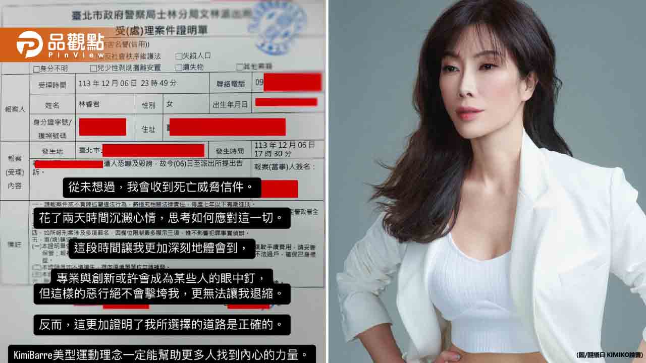 然而,KIMIKO在9日透過臉書自曝收到一封死亡威脅信,同時曬出前往警局報案的受理證明單,強硬表示:「我絕不低頭」。為了讓大家確保她的平安,KIMIKO決定從12日開始每天開直播報平安。