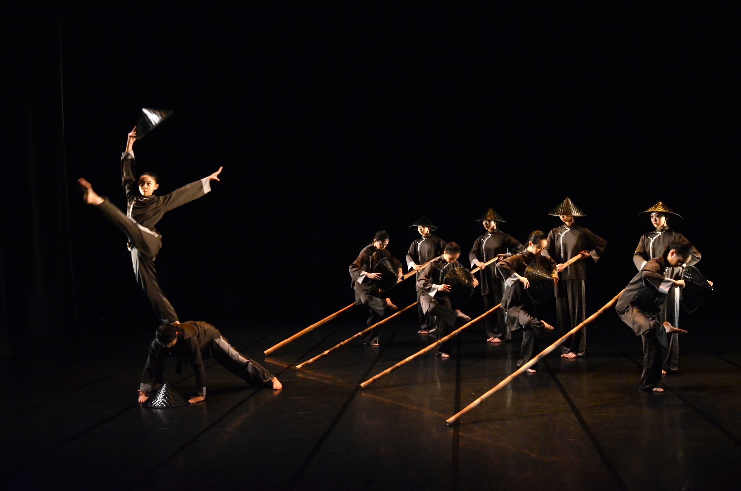 ↑圖說:中國舞《拂竿•倏影》則將國劇武功與舞蹈劇場融合,打造俠士縱橫天地的瀟灑姿態。(圖片來源:高雄市教育局提供)