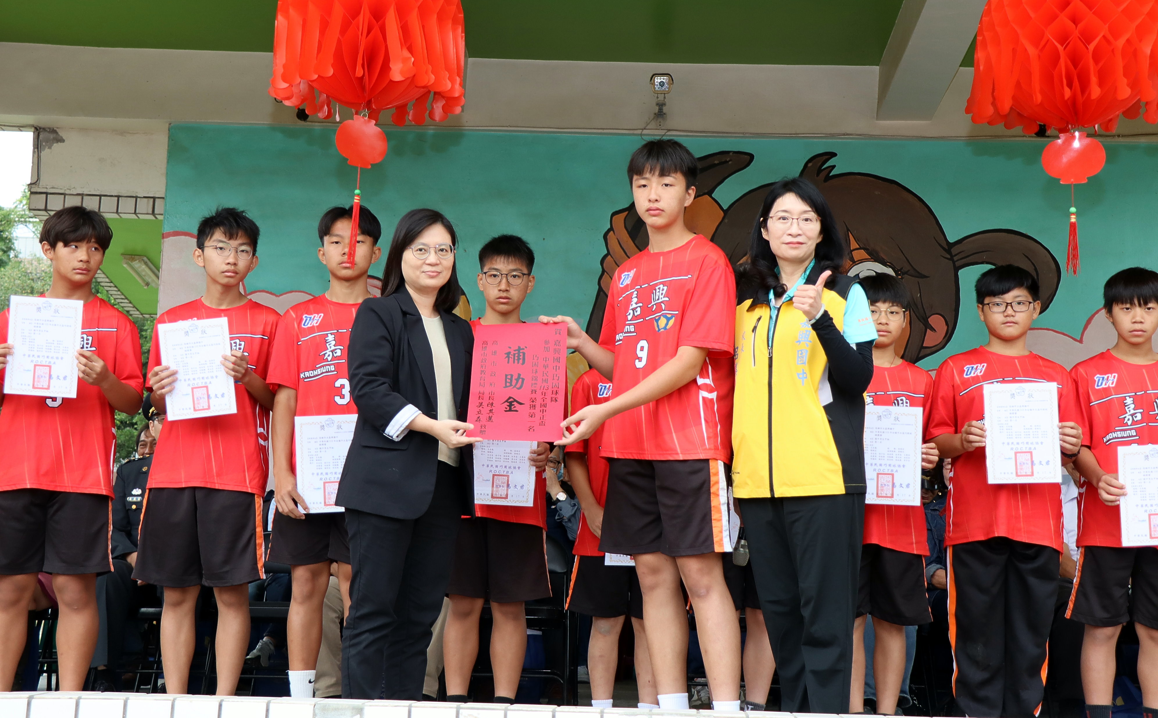 校長呂美儀表示感謝教育局重視並致贈獎金給予師生鼓勵,頂著2024亞洲盃冠軍的榮耀,隊長李宏恩帶領一二年級學弟們勇闖全國賽,確實充滿了壓力與挑戰,比賽對嘉興國中巧固球隊新生代意義重大,不僅是球技的傳承、實力的展現,更是選手們學會調整心態、戰勝壓力、增強自信的寶貴經驗。