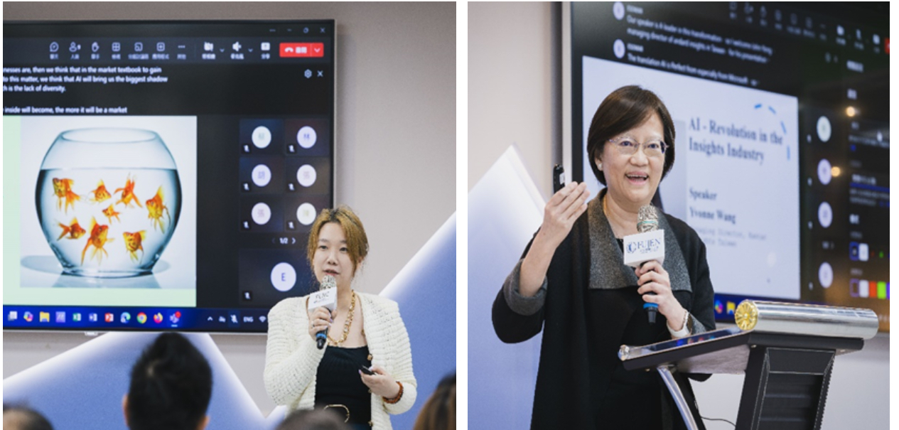此外,來自 Kantar Insights Taiwan 總經理Yvonne Wang、SoWork Marketing 以及SurveyCake的專家也分別對人工智慧在洞察產業中的應用與數據決策模型的實務進展進行了精彩分享。
