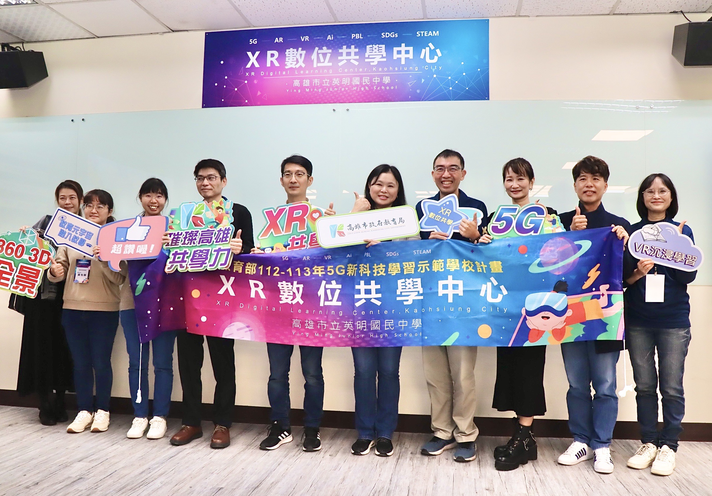 高雄市教育局積極推動教育部「112-113年5G新科技學習示範學校計畫」,並於17日在英明國中舉行「高雄市XR數位共學中心」揭牌儀式,讓VR虛擬實境、AI人工智慧等新興科技正式融入校園教學。這是繼6月旗山國小啟用後,高雄市設立的第二座XR數位共學基地,旨在透過創新科技縮短城鄉學習差距,打造跨校共學的嶄新教育模式。