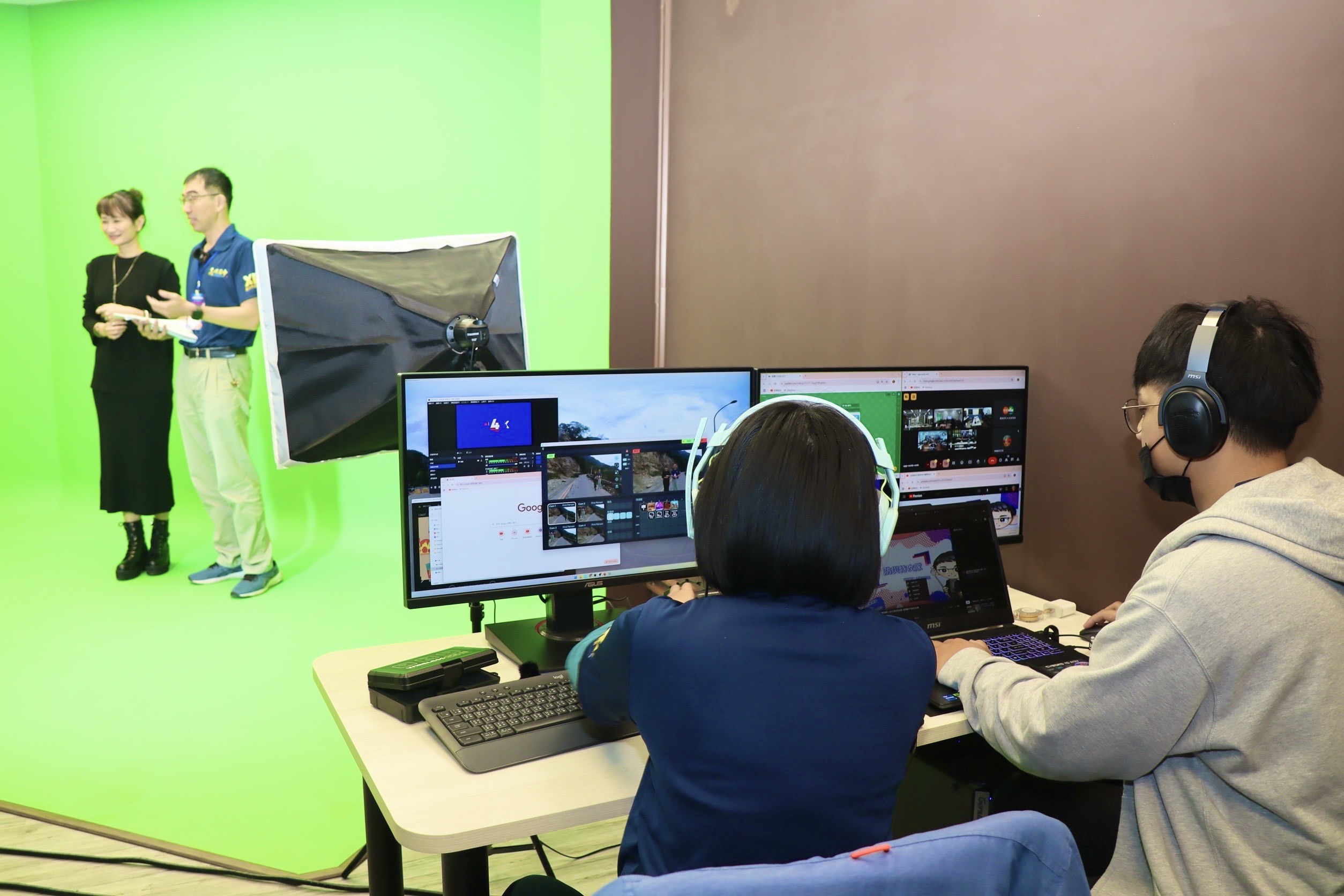 ↑圖說:現場也透過「高雄市XR數位共學中心」XR虛擬攝影棚的建置,進行公開觀課「防災特攻隊」課程。(圖片來源:高雄市教育局提供)