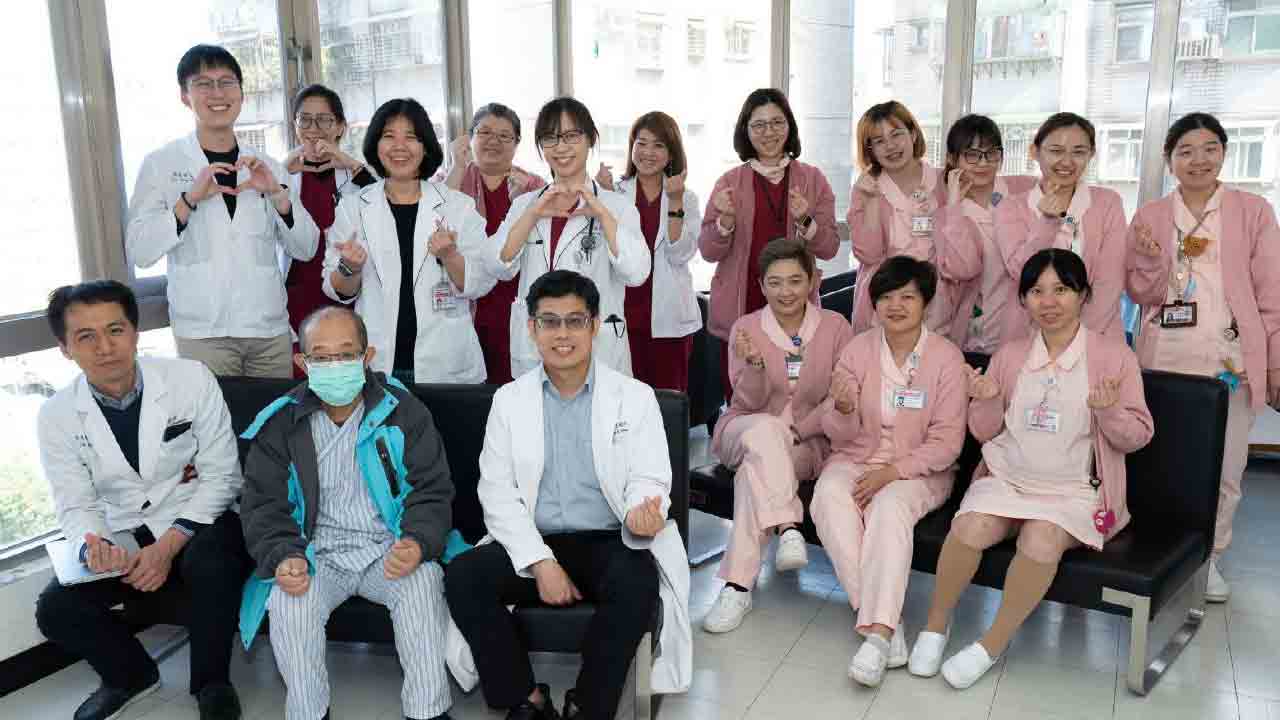 ↑圖說:完成近半年的療程後,賴先生順利出院,與主治醫師謝燿宇醫師(前排中)及照護團隊一同合影留念。(圖片來源:雙和醫院提供)
