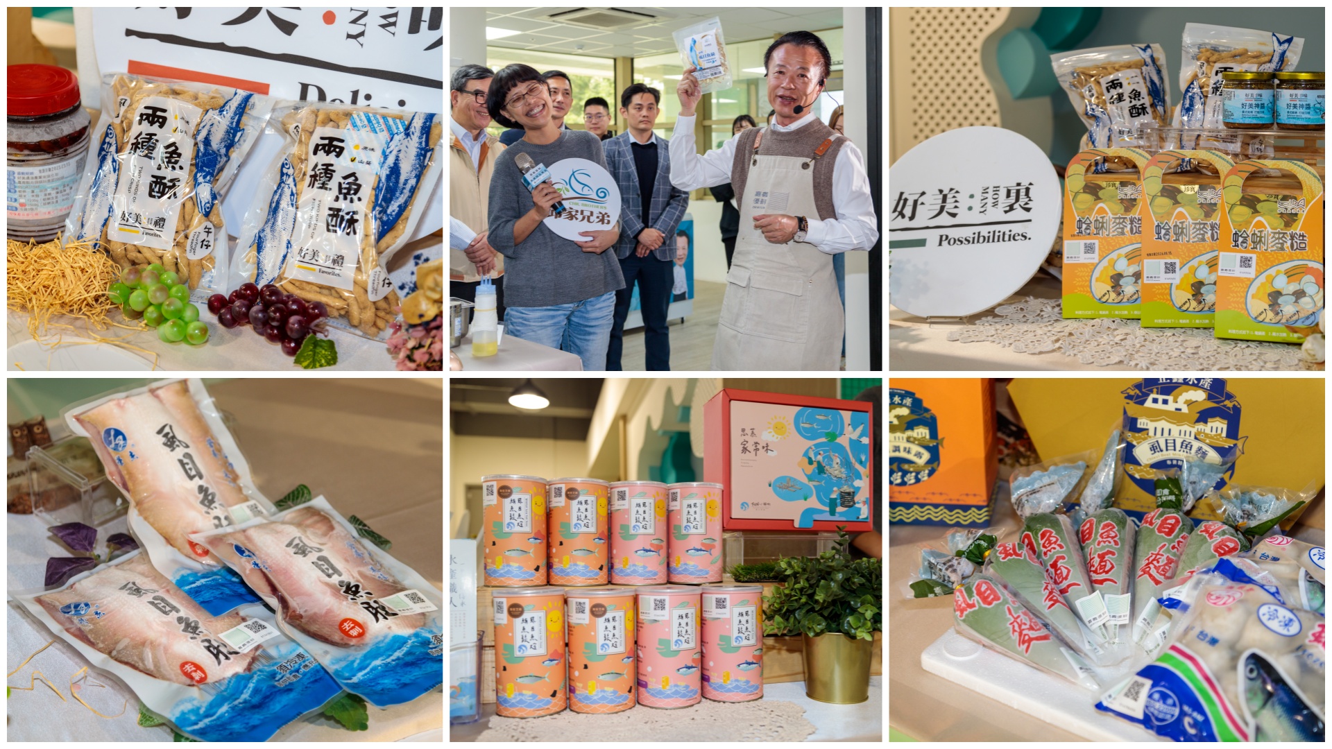 ↑圖說:翁章梁大力推薦在地正鑫水產、榮杰產銷班、邱家兄弟、樂鱻冷凍、好美農漁產及FUN心鮮蝦等多家業者產品。(圖片來源:嘉義縣農業處提供)