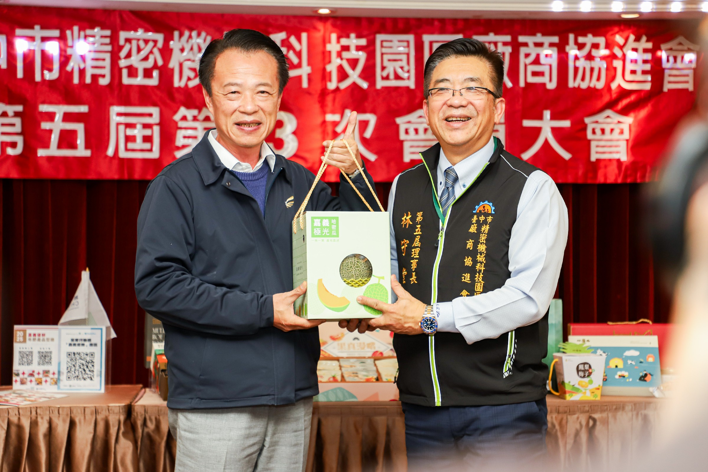 ↑圖說:翁章梁特別感謝臺中市精密機械科技園區廠商協進會理事長林守堂的支持。(圖片來源:嘉義縣農業處提供)
