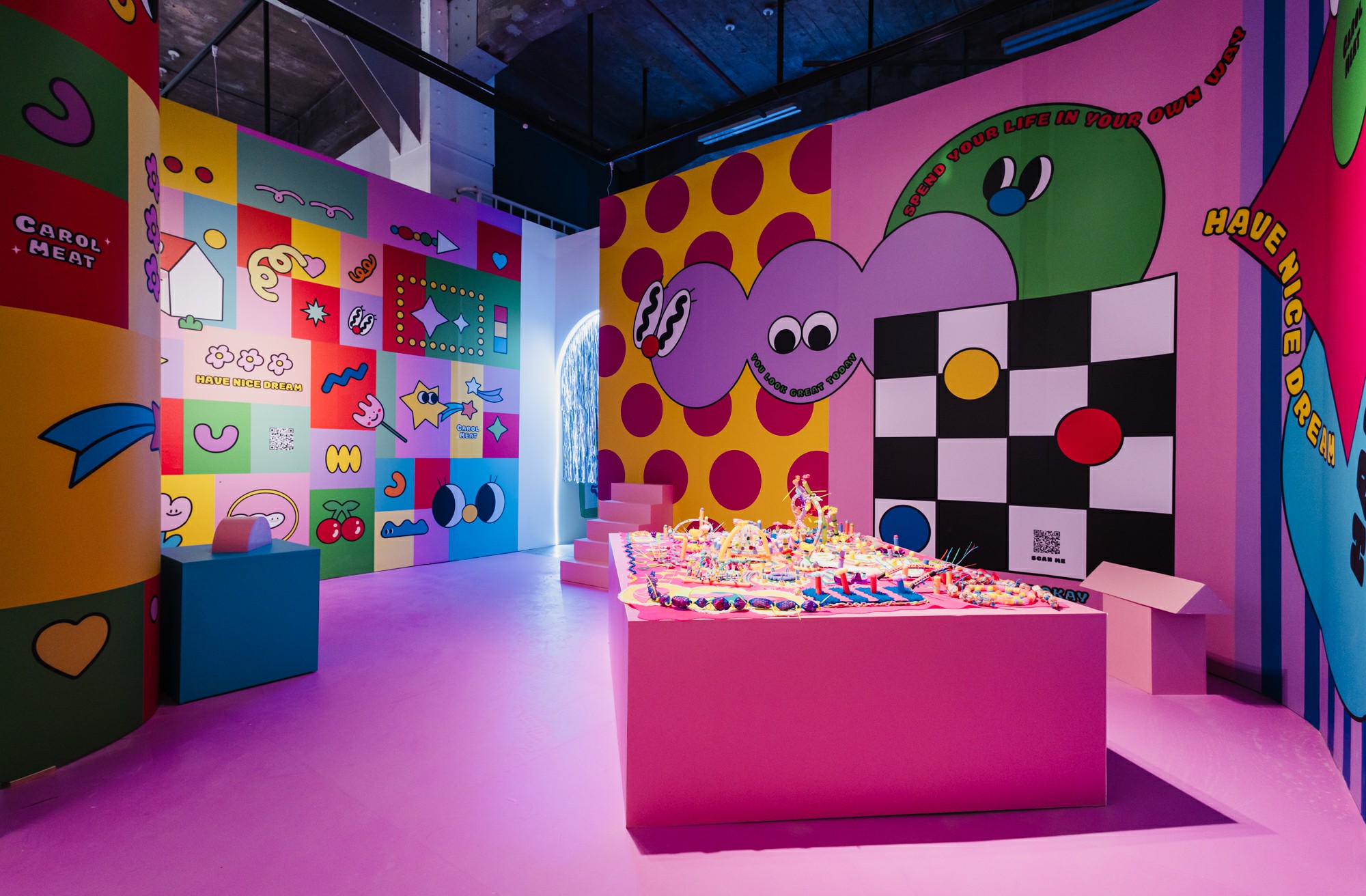 展覽分為多個夢境主題展區,每區皆有獨具特色的創作與故事。在「sweet dreams」展區,觀眾將被Carol Meat的幾何布料編織作品吸引,這些作品象徵她對創作夢想的堅持與熱愛;KINGJUN則以螢光色系及鏡面材質打造出迷幻的夜光空間,再現夢中的奇異光景;而A ee mi療癒系角色的實體化作品,則向觀眾傳遞正向的生活態度,鼓勵勇敢追夢。