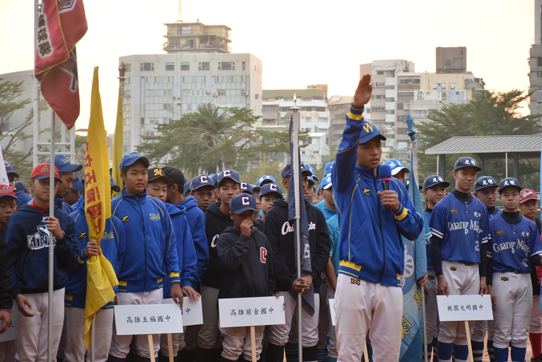 圖說:五福國中球員代表所有參賽選手宣誓。(圖:高雄中區扶輪社提供)