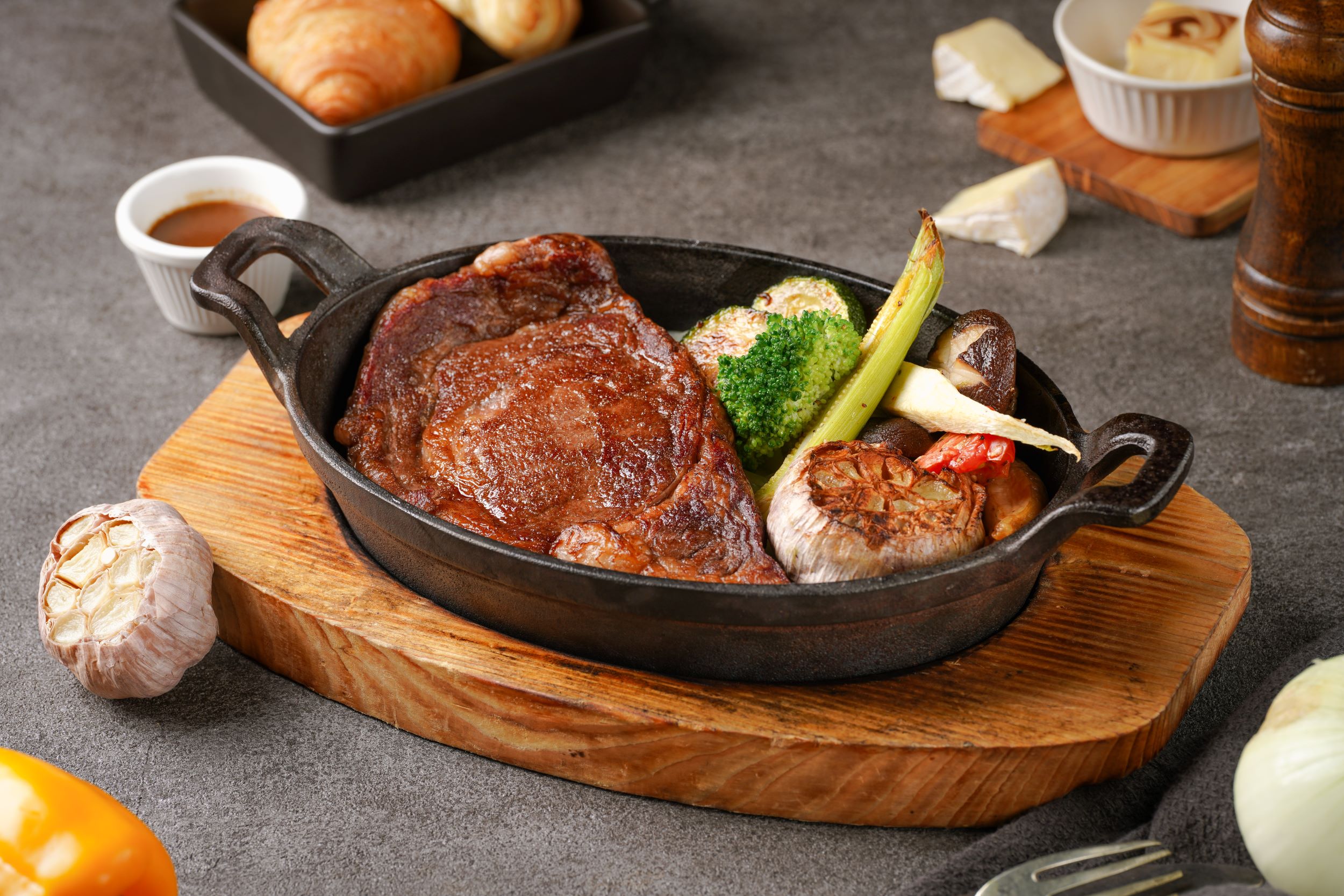 ↑圖說:位於和逸飯店‧高雄中山館30樓的Cozzi THE Roof餐廳可眺望高雄絕佳市景,招牌料理「乾式熟成牛排」。(圖片來源:和逸飯店‧高雄中山館提供)