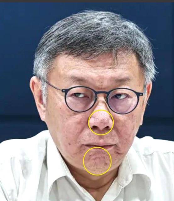 近期,柯文哲的鼻頭出現原先已有的類似囊包腫更巨大,且顏色灰褐色更深,前途黯淡無光! 下巴代表七、八十歲老運,有疤痕,對老運影響頗具負面。