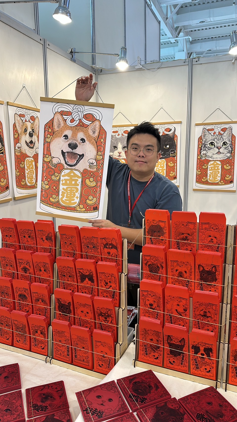 ↑圖說:以寵物春聯和紅包袋聞名的秋爽寵物插畫事務所,每年春節檔期繪製的生肖系列廣受好評,今年更推出「寵物御守」供毛寶主人選購收藏。(圖片來源:高雄市青年局提供)