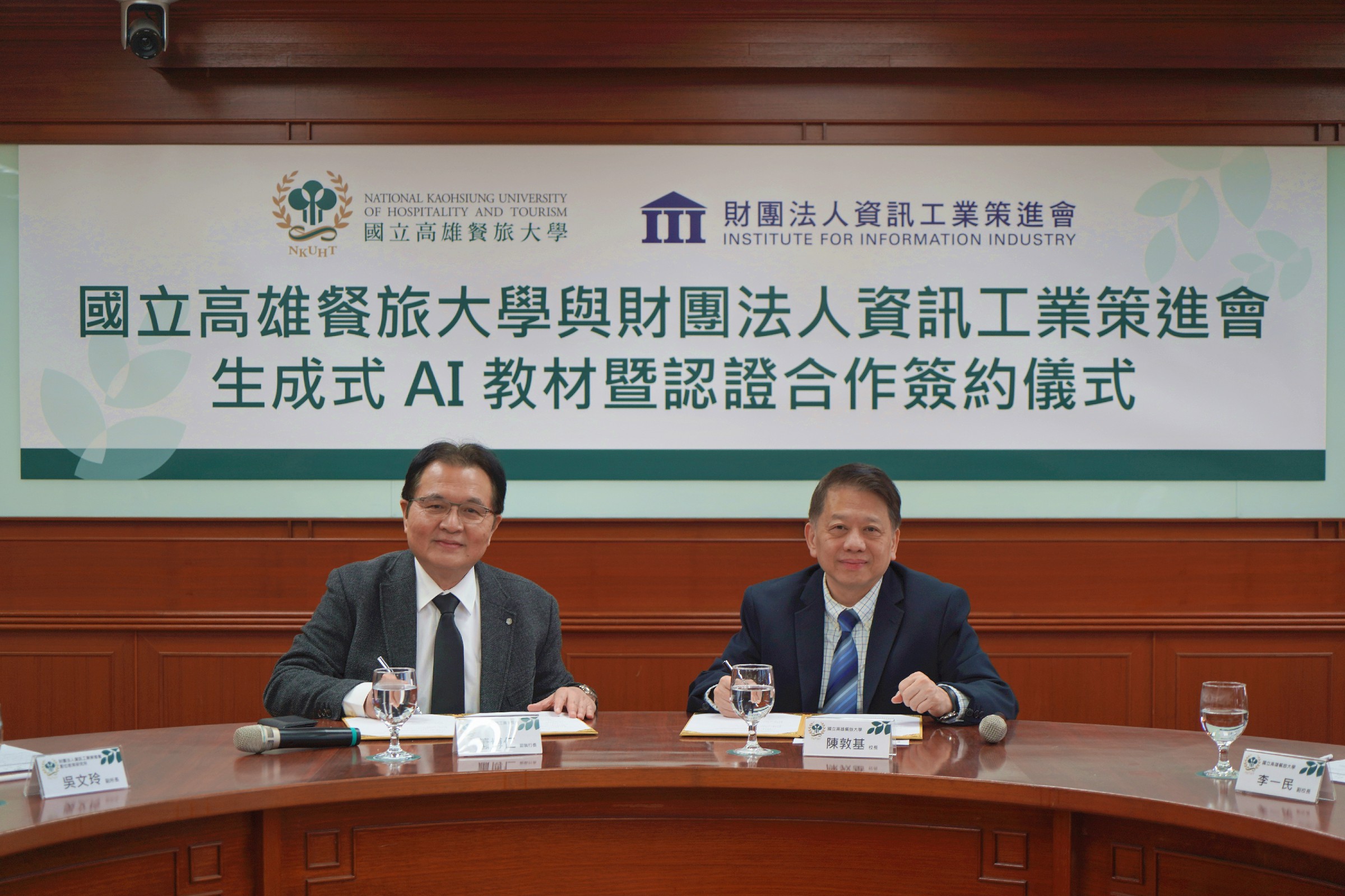 面對全球AI技術迅速崛起與應用需求劇增,國立高雄餐旅大學(高餐大)率先布局,與財團法人資訊工業策進會(資策會)簽署合作協議,共同迎接AI教育新時代。此次合作,資策會授權高餐大使用其開發的生成式AI教材,並推動學生參與AI能力認證,雙方攜手打造智慧教育新典範,助力餐旅與觀光專業向數位化與智能化邁進。