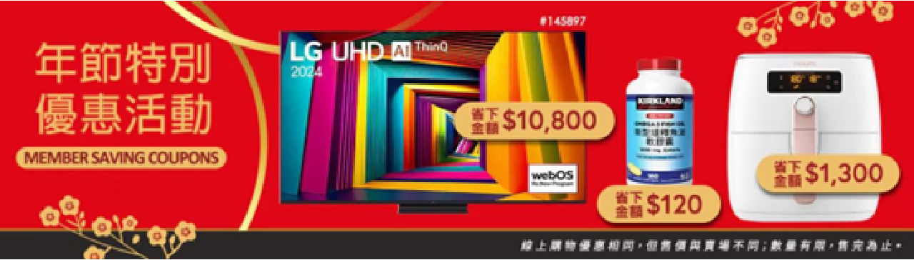 除舊布新迎新春,更是要趁年節特別優惠活動走一趟賣場,LG 75吋4K顯示器,折扣10,800元,小一點的65吋QLED顯示器19,999元,飛利浦的氣炸鍋5,200元有找,遇上多雨潮濕的冬天,換一台自動除菌的離子空氣清淨除濕機不用萬元,想要用IH炊飯電子鍋煮好吃的米飯,也不用跑到日本提回來,因為好市多直接便宜2,000元。