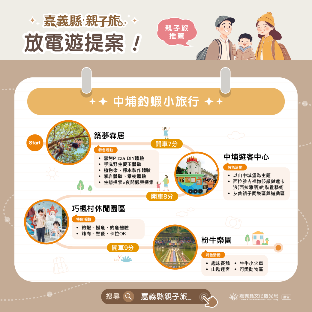 更多精彩的親子遊程資訊,歡迎至嘉義縣文化觀光局官網或嘉義縣親子旅網站查詢,讓嘉義中埔成為全家歡樂時光的最佳目的地!