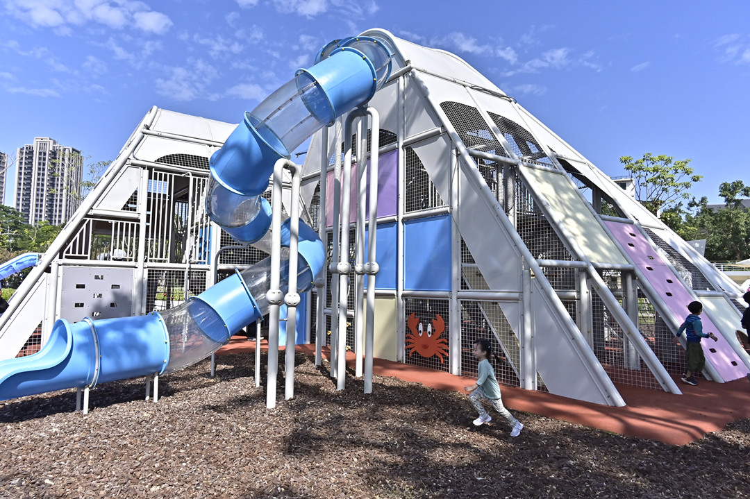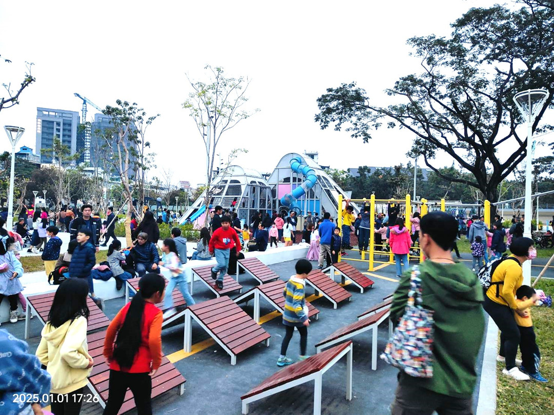 公園處進一步補充,公園內還融入援中港當地常見生物元素, 讓孩子們在遊戲中學習認識藍田周邊的生態,達到寓教於樂的效果;除了新設遊戲區外,公園廁所全面翻新,全區步道鋪面更新,藍田公園的夜間照明升級,成為當地居民與遊客的打卡新熱點。