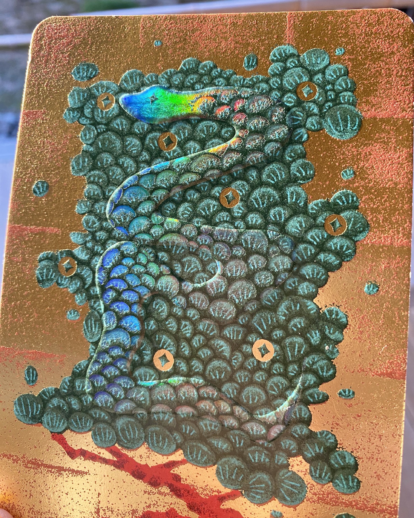 ↑圖說:今年春節Sophia Ji將以「隱藏於松樹間的閃耀金蛇」為形象,推出新年插畫賀卡。(圖片來源:業者提供)