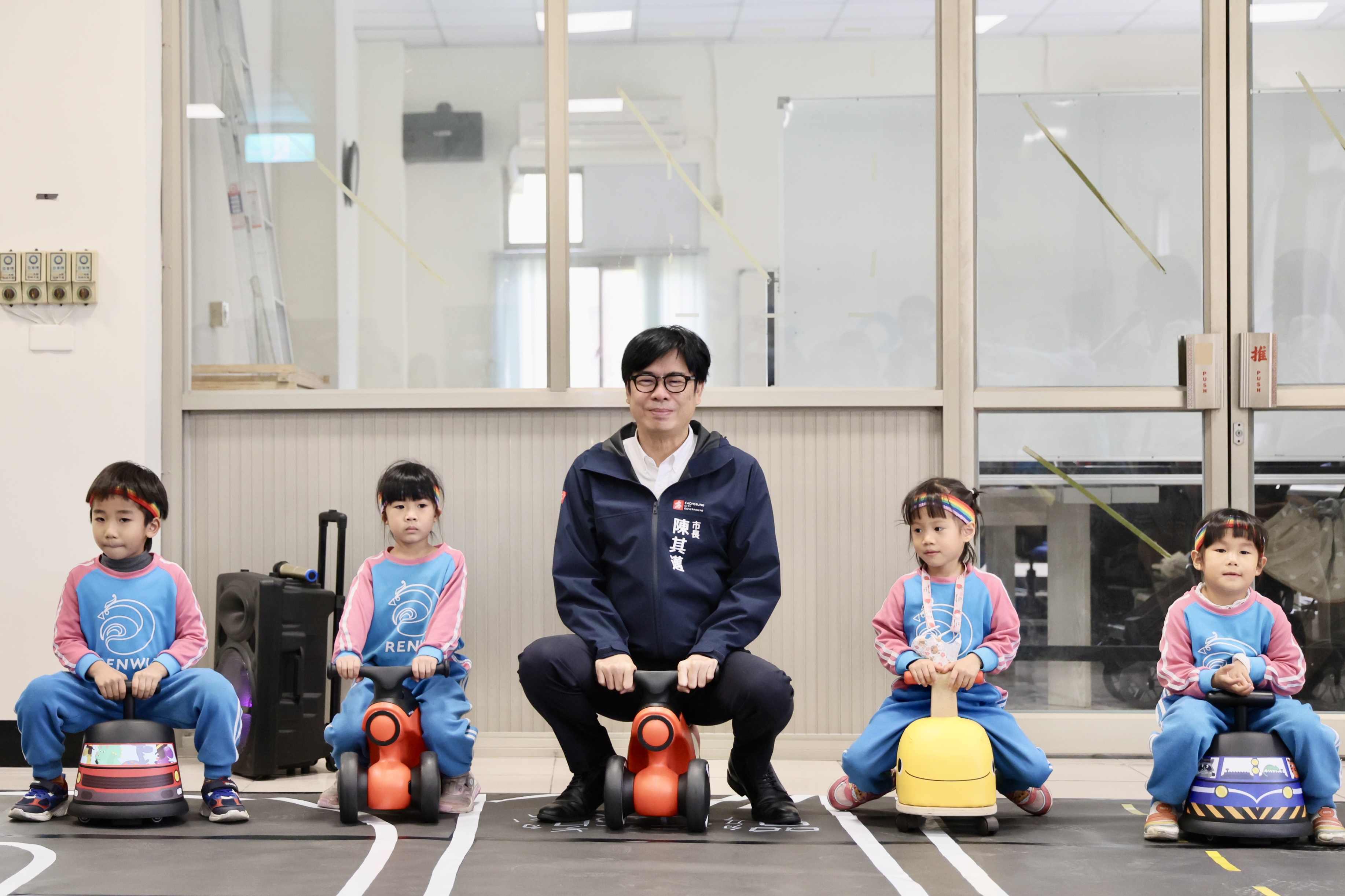 陳其邁說明,文南公共托嬰中心為仁武區第2處,也是高雄第61處公托,市府為推動友善育兒措施,113年修正公托機構收托原則,放寬每位嬰幼兒登記1家公托規定,調整為可登記2家公托,家庭有2名以上兒童得優先公托,盼減輕年輕家長負擔。隨後陳其邁在工作人員導引下,逐一參觀公托空間,與幼兒玩樂互動,並參加三輪車競賽,現場笑聲不斷、氣氛歡樂。