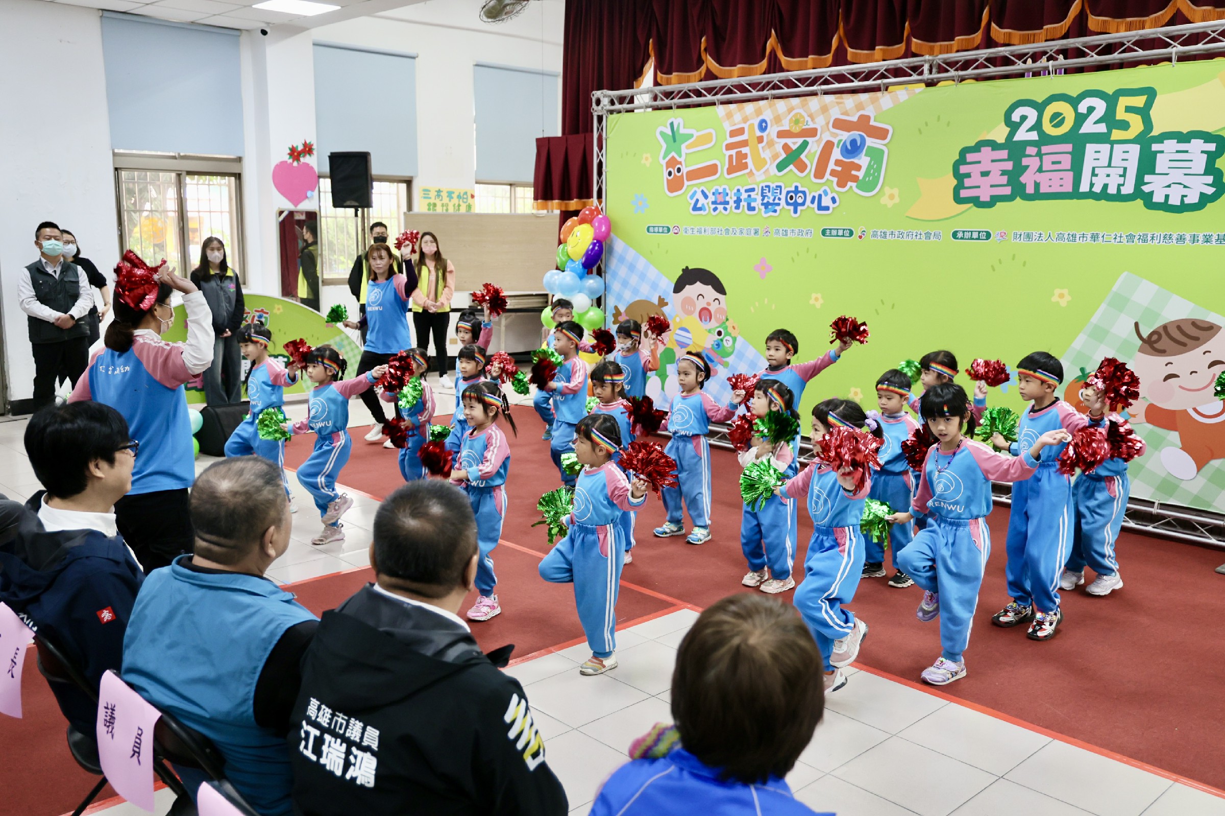 圖說:小朋友熱舞慶祝文南公共托嬰中心啟用。(圖片來源:高雄市政府提供)