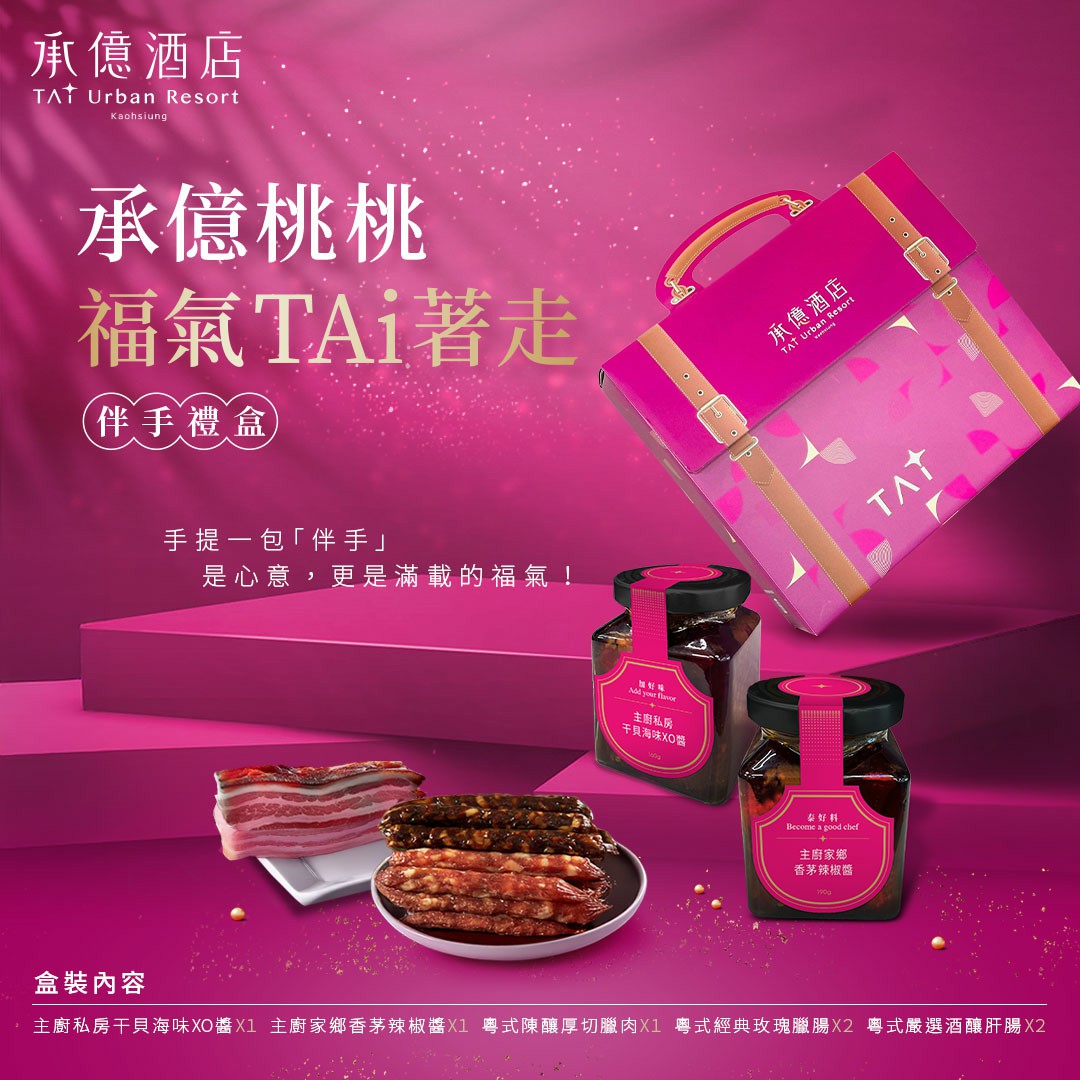 此外,承億酒店同步推出新春限量伴手禮盒「承億桃桃」,以喜氣洋洋的桃紅色手提包為設計,內含干貝海味XO醬、玫瑰臘腸、陳釀厚切臘肉等多款主廚精選美食,售價NT$1,988元,無論送禮或自用都充滿心意與福氣。