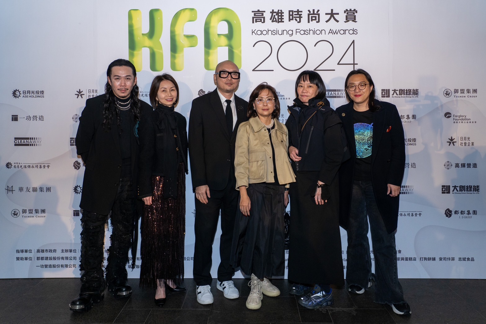 圖說4.高雄時尚大賞由台灣服飾設計師協會理事長竇騰璜(左3)、時尚鬼才周裕穎(左1)、時尚女王汪俐伶(右1)、潮流品牌主理人洪琪(右2),以及市場與國際行銷代表的紡拓會處長江夏碧(右3)、日月光副總阮筠晴共(左2)共同擔任評審。(圖片來源:高市青年局提供)