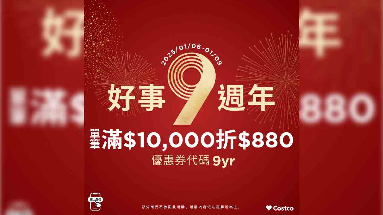 好市多線上9週年!首檔年前優惠開跑 滿萬現折880元