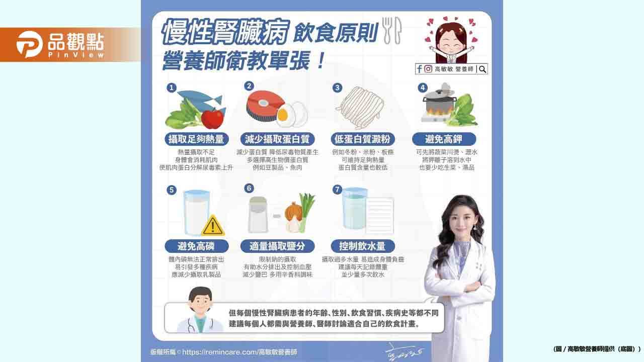 不過營養師要提醒腎臟病友,每個慢性腎臟病患者的年齡、性別、飲食習慣、疾病史等都不同,建議每個人都需與營養師、醫師討論適合自己的飲食計畫。