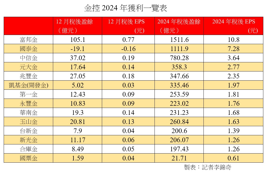 此外,包括元大金、第一金、永豐金、華南金、玉山金,2024年獲利都創歷史新高。