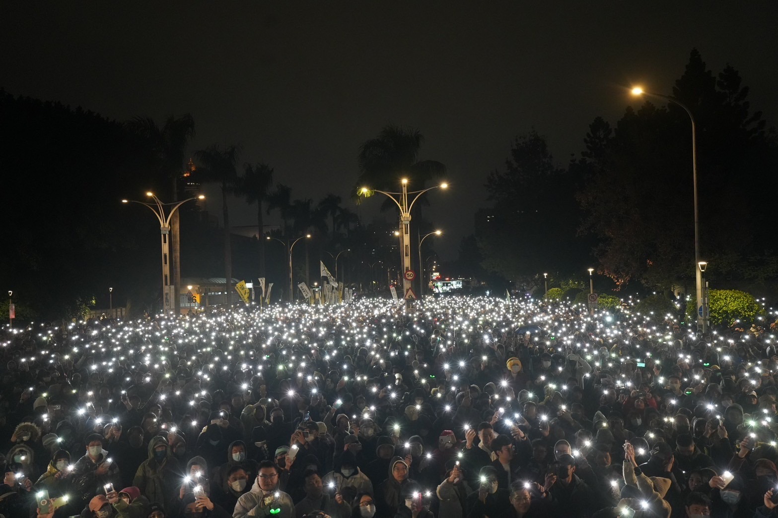 活動尾聲,民眾黨將象徵「綠色威權」的綠光打在自由廣場牌樓上。黨主席黃國昌上台痛批,民進黨已成為自己過去最討厭的模樣,如今看到的是威權、獨裁,把司法檢調當成政治追殺的工具。他強調今天團結的台灣人民,就是要向賴清德這個獨裁威權體制宣戰。