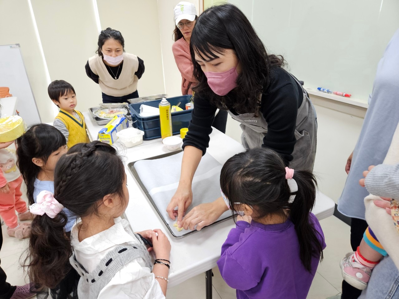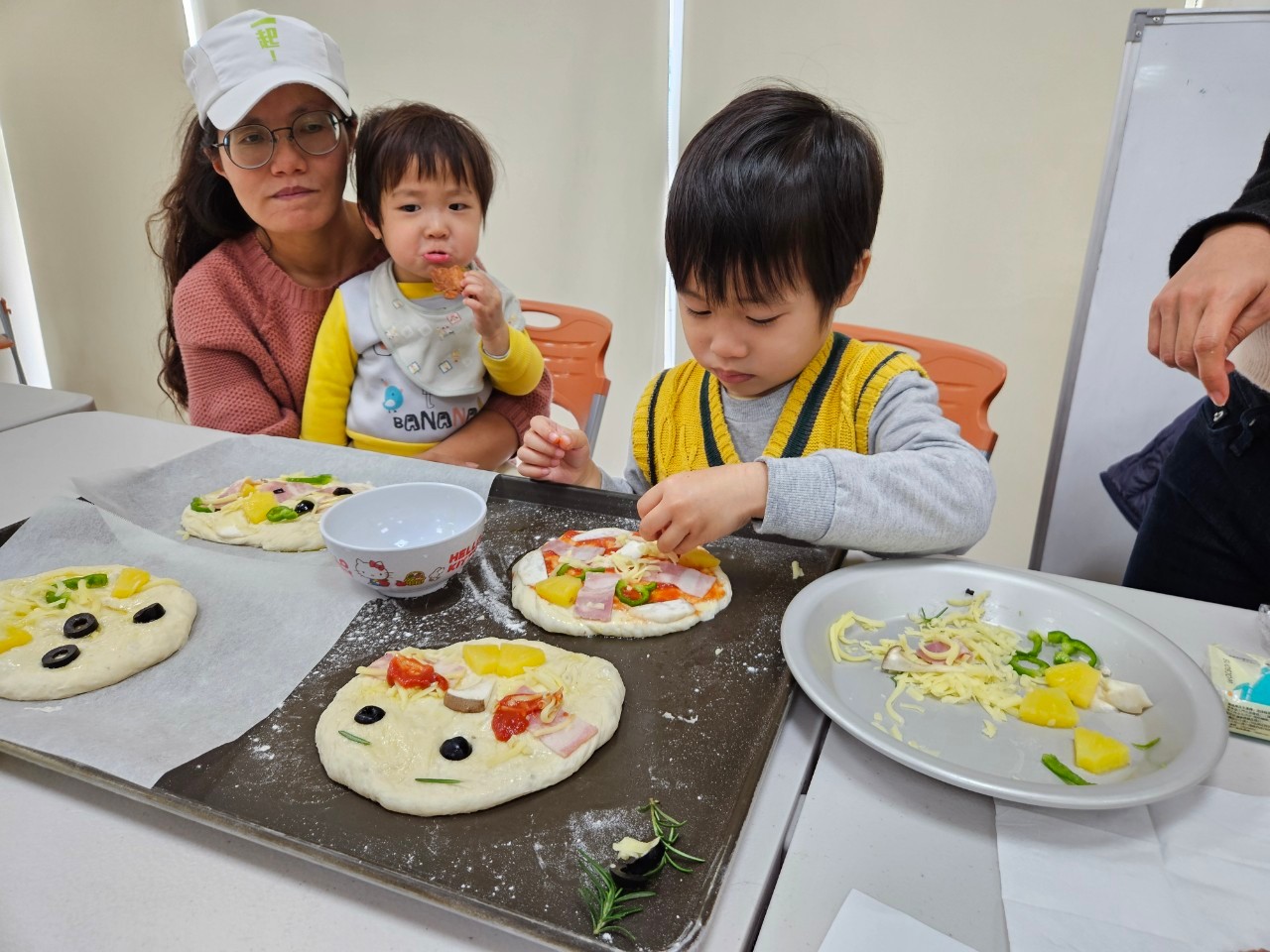 活動講師還特別提供多樣食材,讓孩子自由挑選與搭配,透過揉捏、塑形與添加配料的過程,激發孩子的創意與想像力。同時,這些細緻的動作不僅鍛煉了孩子的手部肌肉,也帶來觸覺、嗅覺與視覺的多元感官刺激。更重要的是,親子共同參與烘焙,不僅增進彼此的互動與情感交流,也讓家庭之間建立更多連結與分享的機會。
